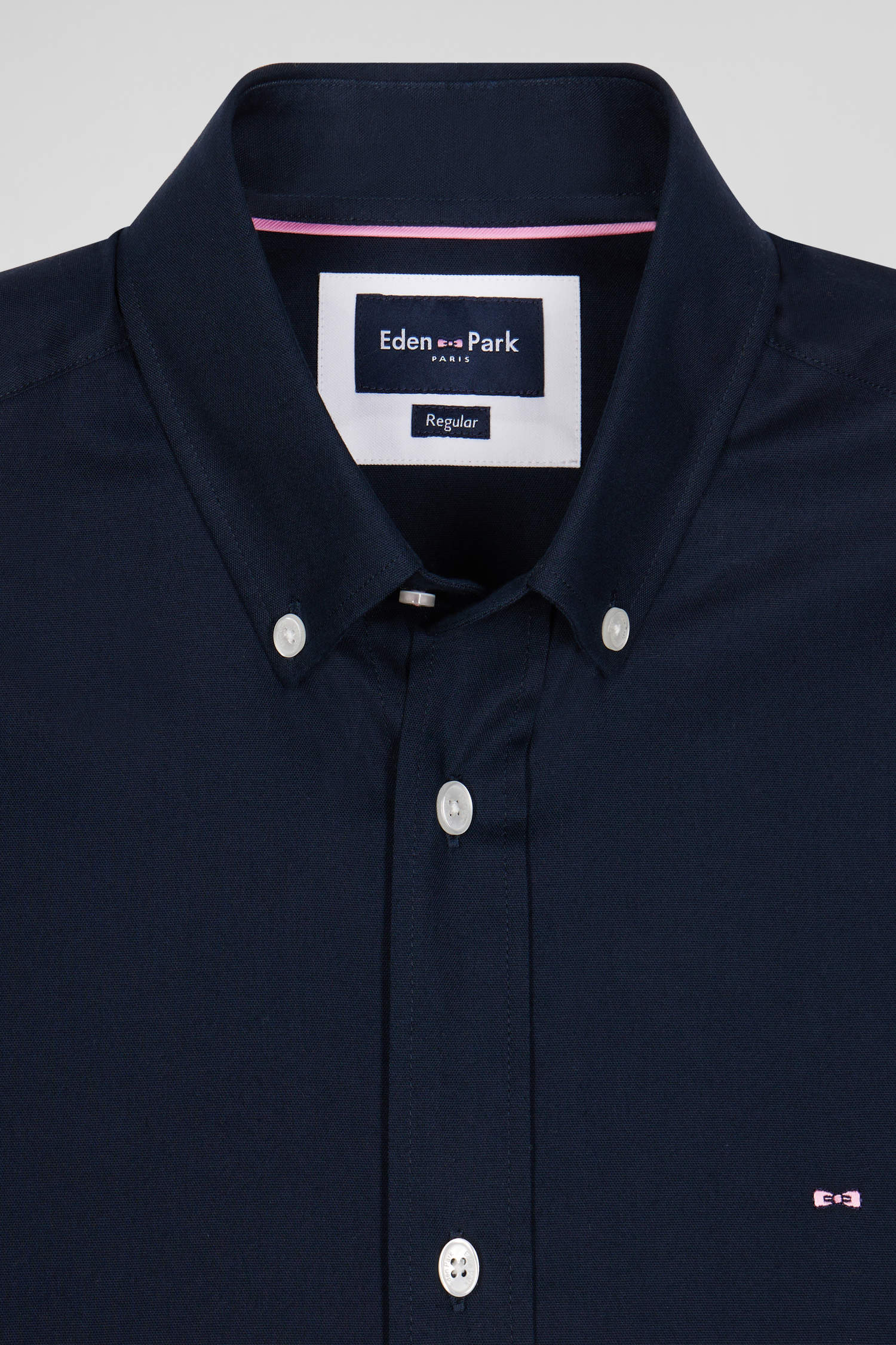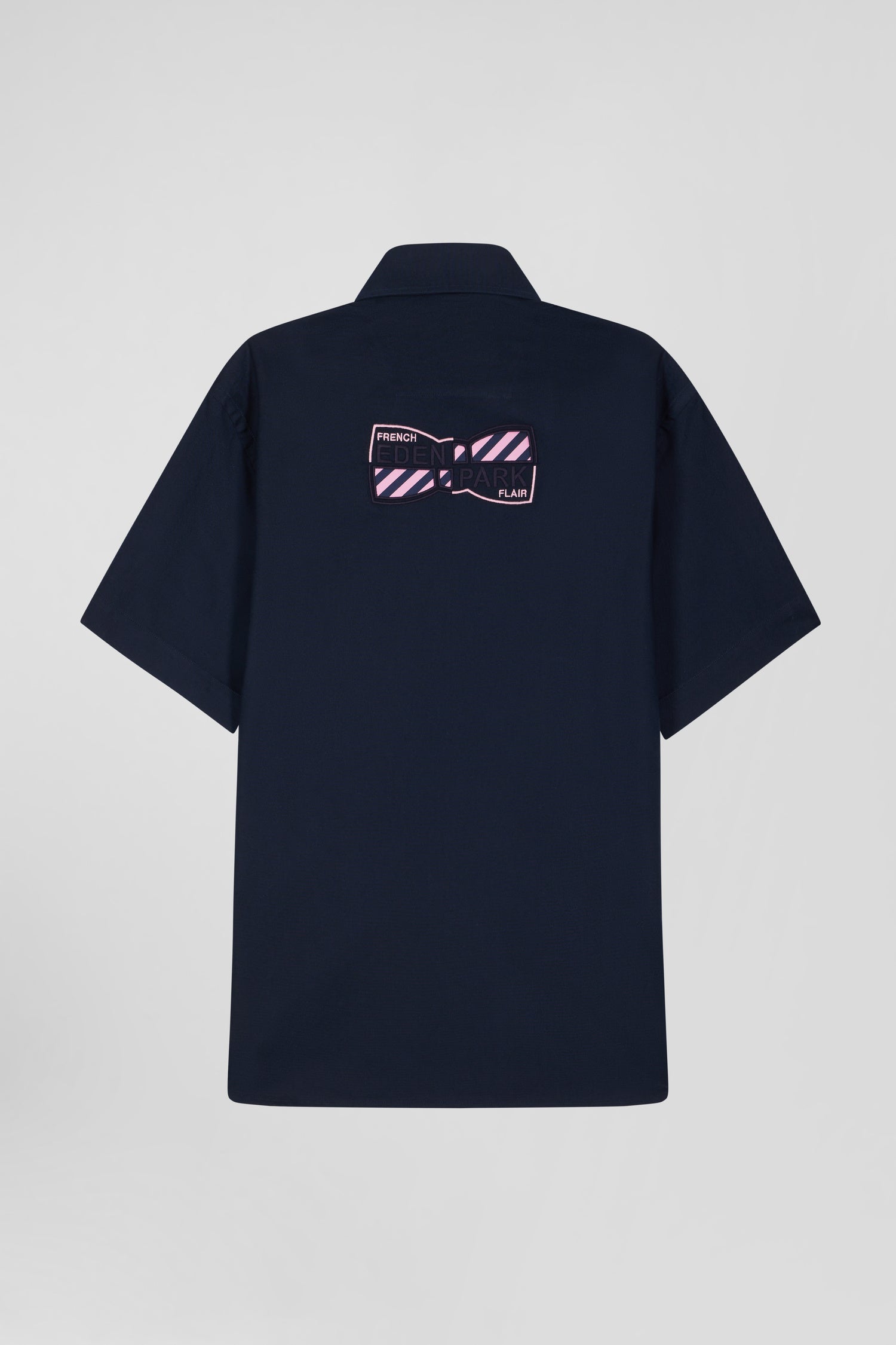 Regular navy blue cotton short-sleeved shirt with back embroidery