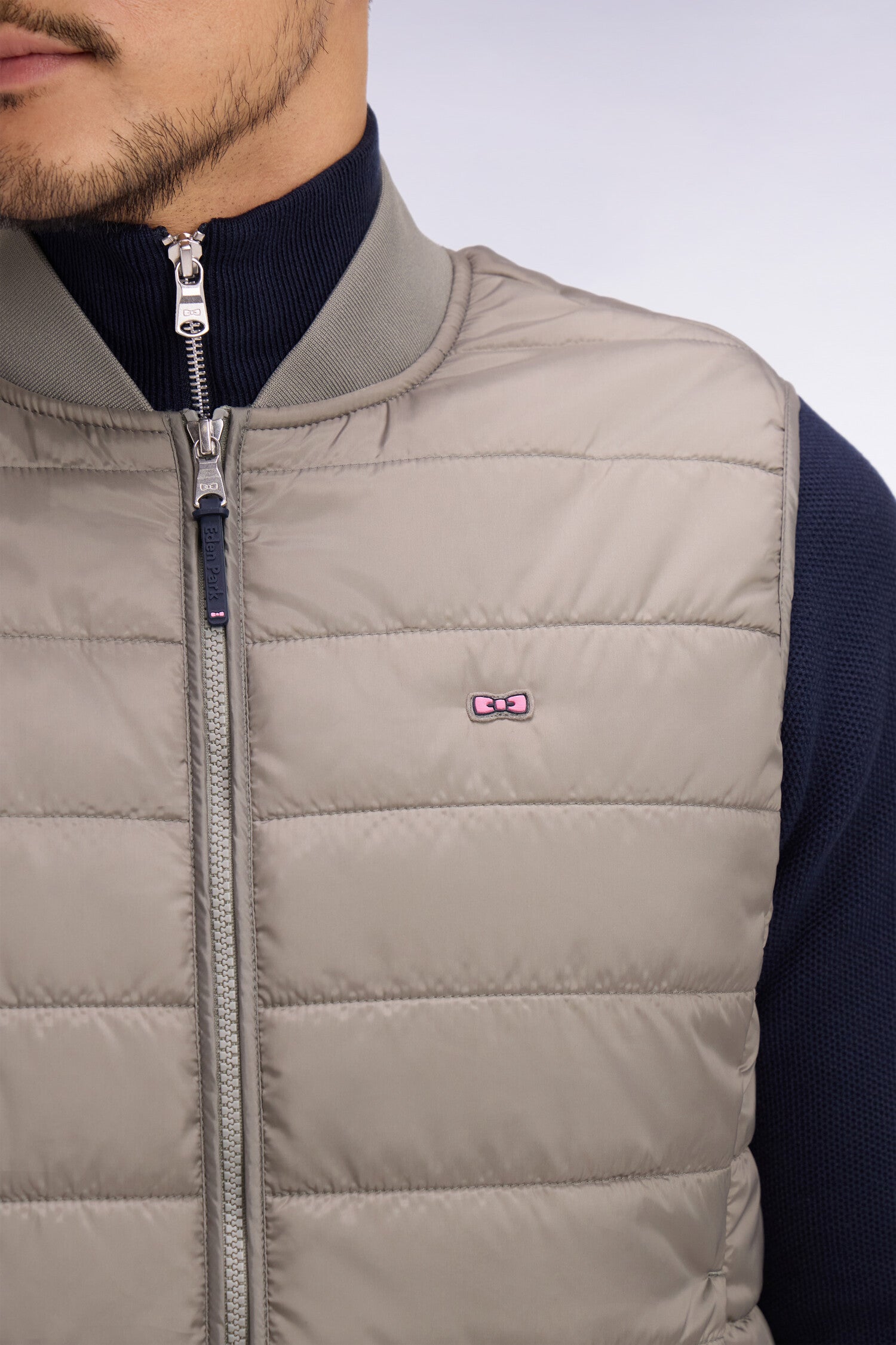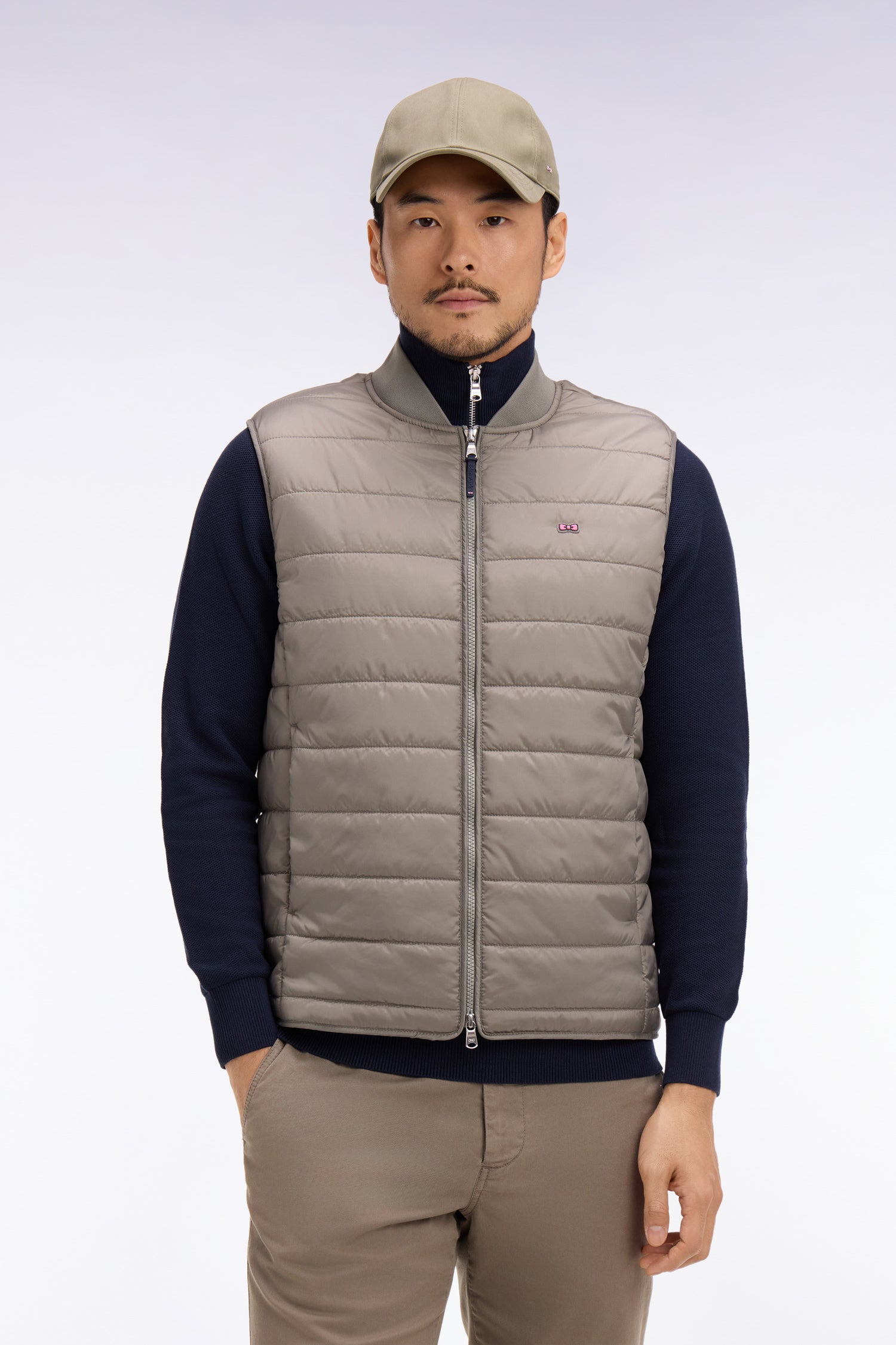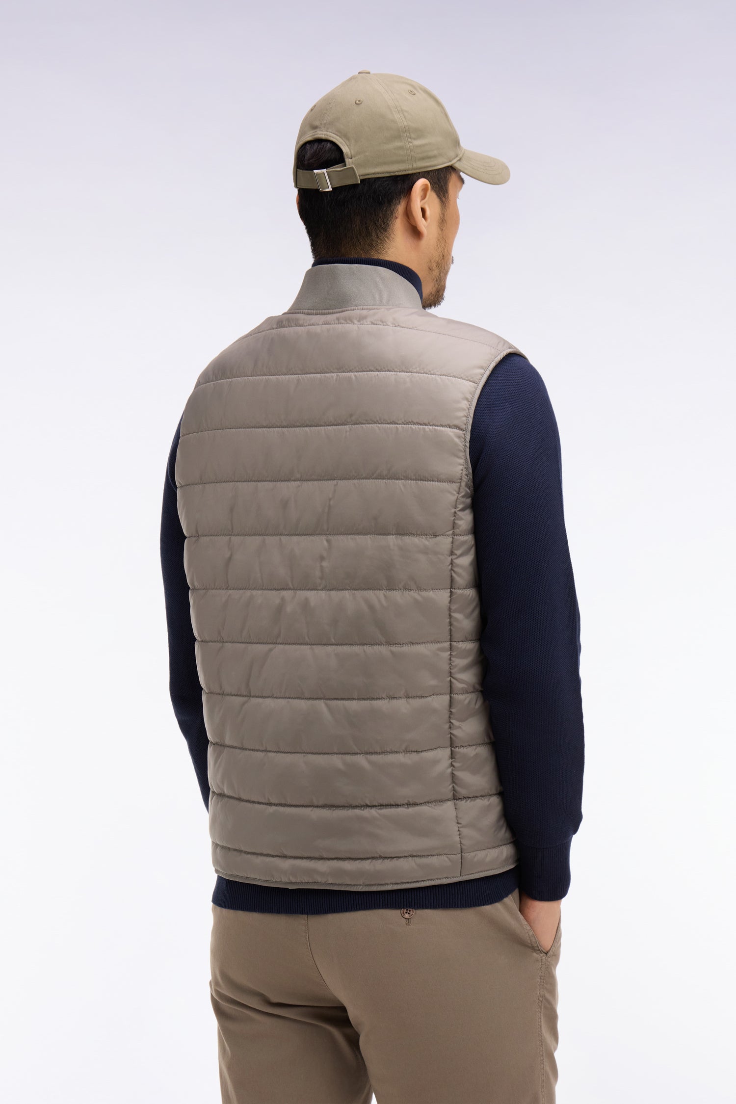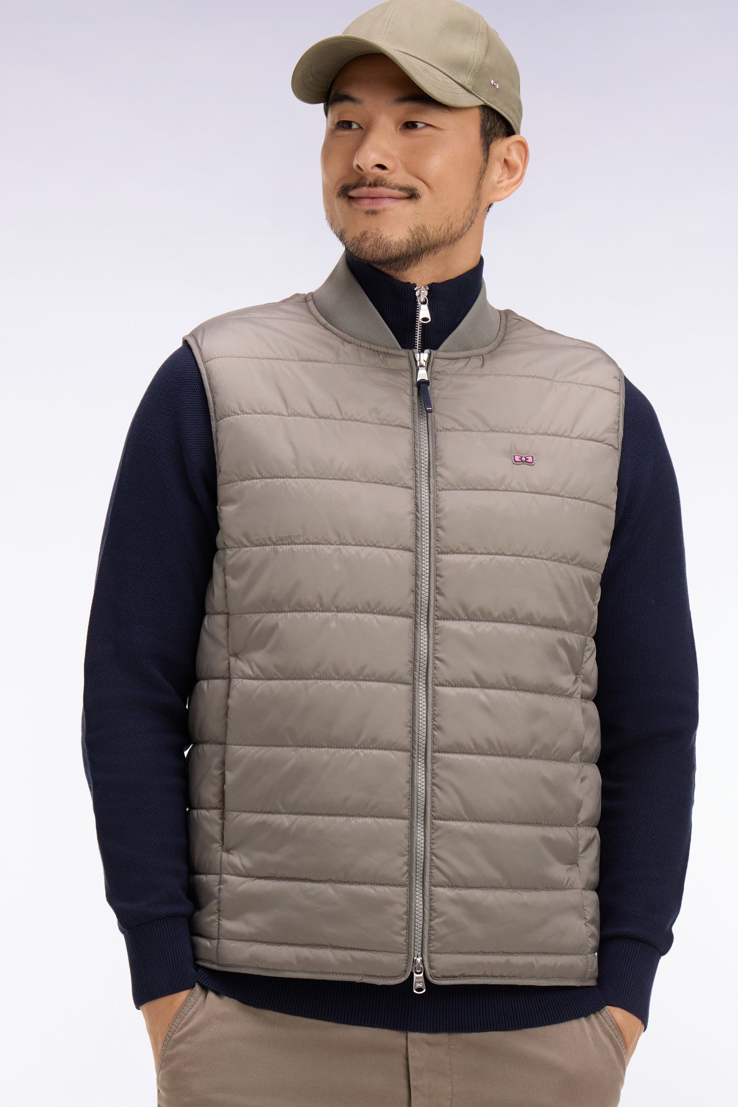 Notre doudoune sans manches allie style et fonctionnalité. Ce modèle intemporel disponible en marine ou en kaki se distingue par son extérieur matelassé et son col tricoté en bords-côtes apportant structure et confort. Avec ses finitions siglées et sa fermeture zippée cette doudoune sans manches est idéale pour l'entrée de saison et facilite vos jeux de superposition.