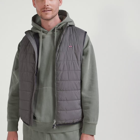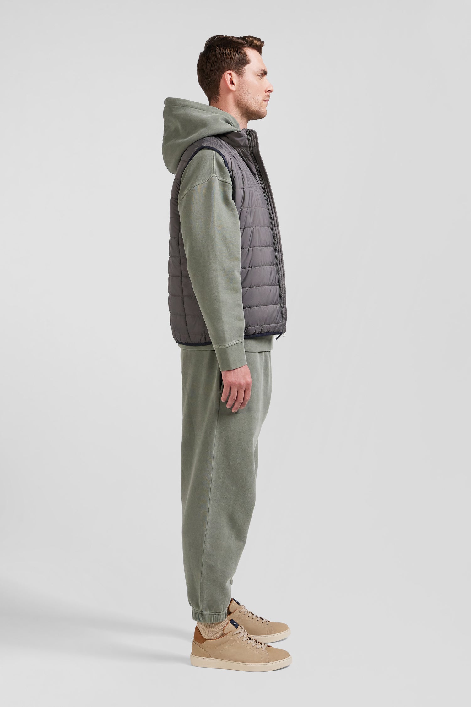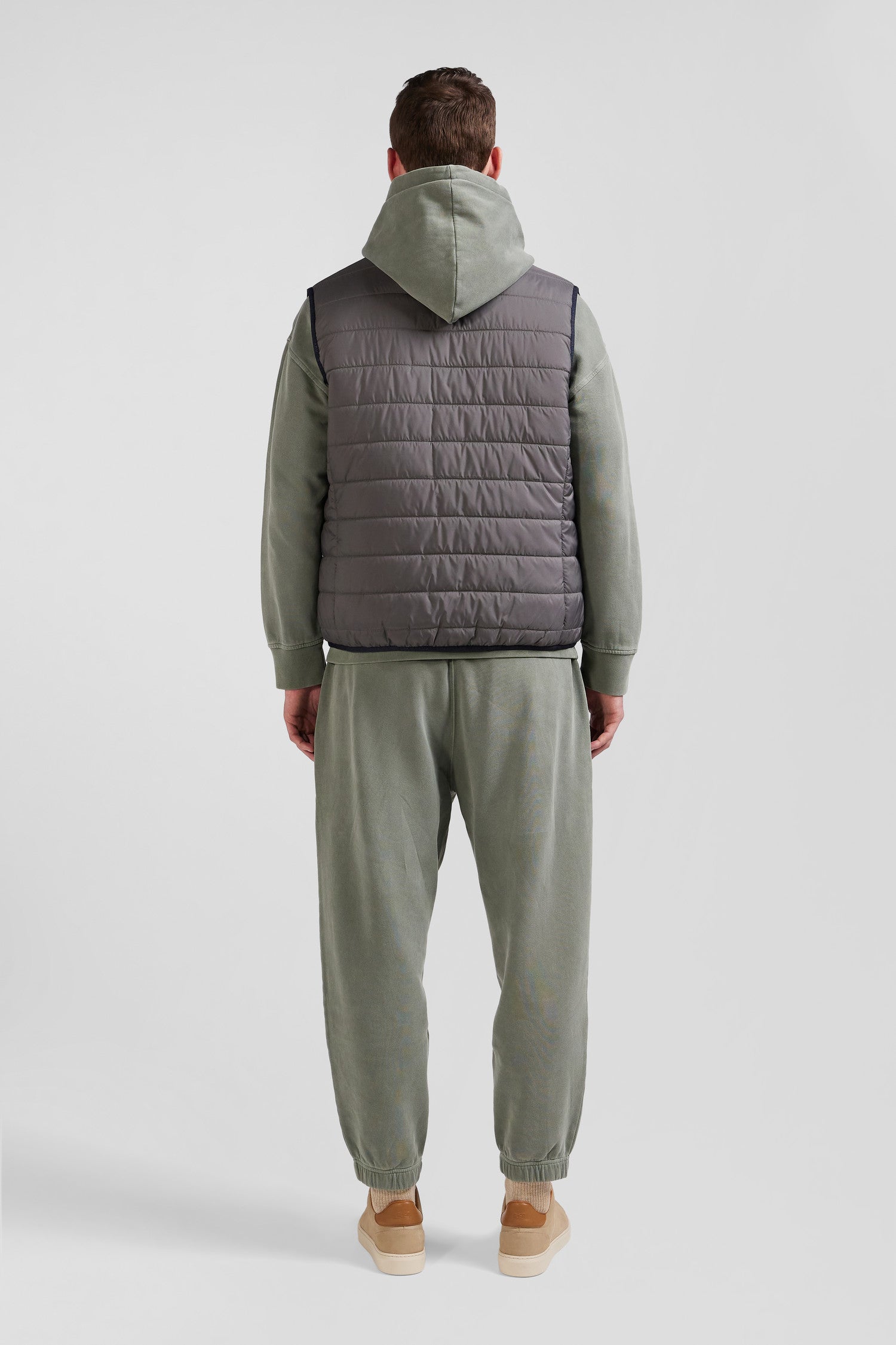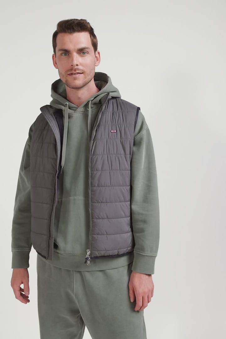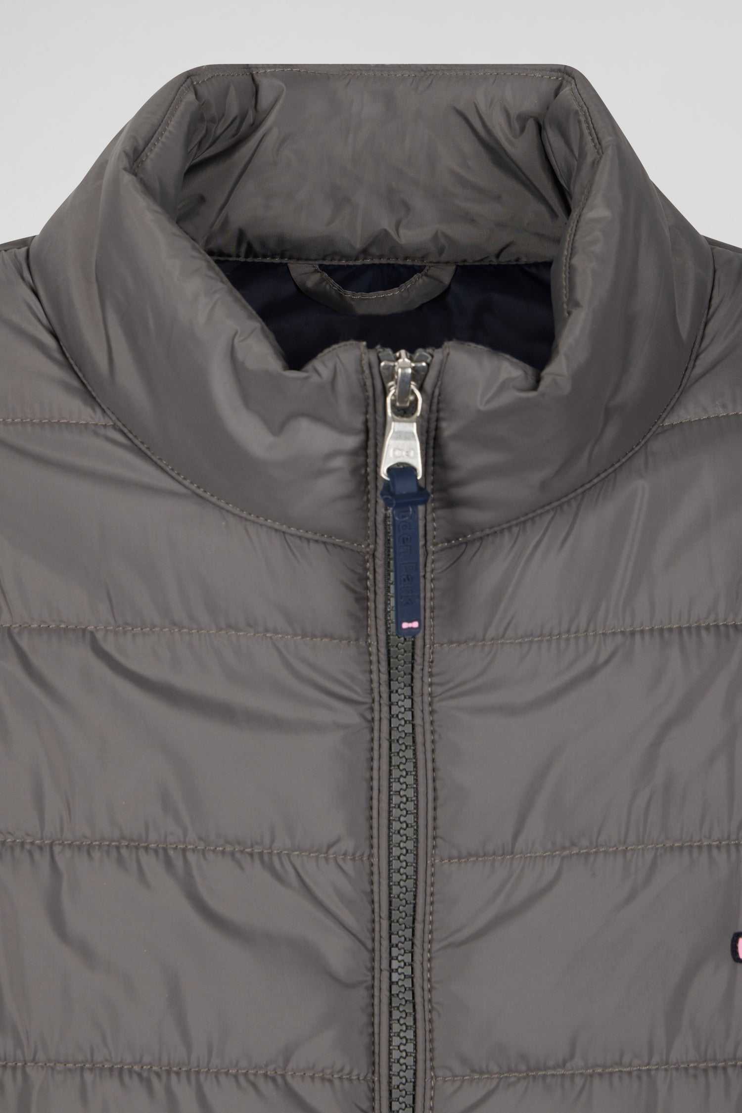 Our sleeveless down jacket is ideal for layering. Sturdy nylon, signature zipper, secure pockets, and meticulous finishing touches like bow-tie embroidery and contrast piping on the armhole edge add aesthetic finesse. Perfect for seasonal transitions, this men's sleeveless down jacket goes with any outfit.