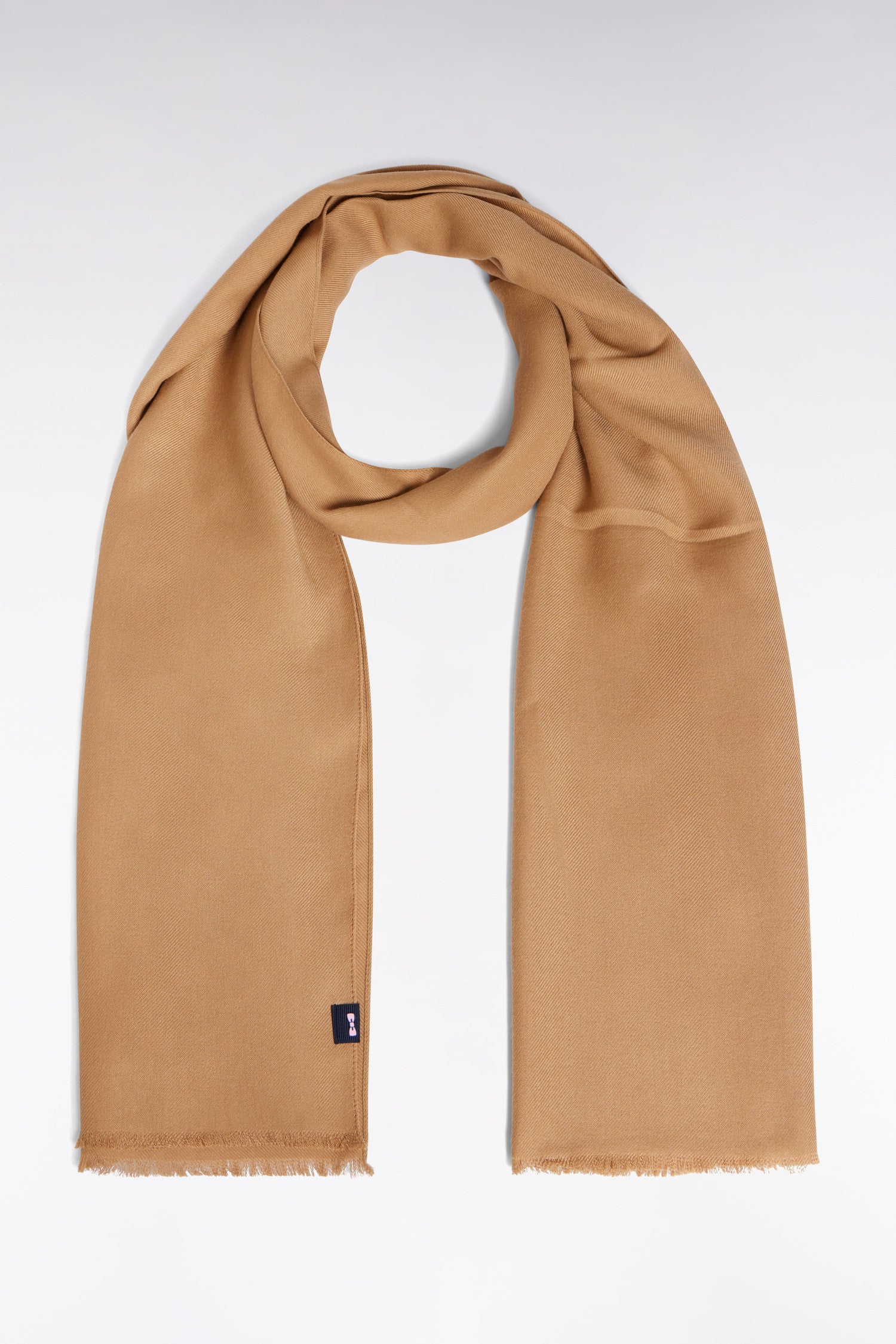 Knitted in a viscose blend for a soft, flowing wear, suitable for mid-season, this plain scarf comes in four timeless colors in harmony with our jackets and coats. Fine bangs adorn the edges of this scarf for a subtle touch of elegance.