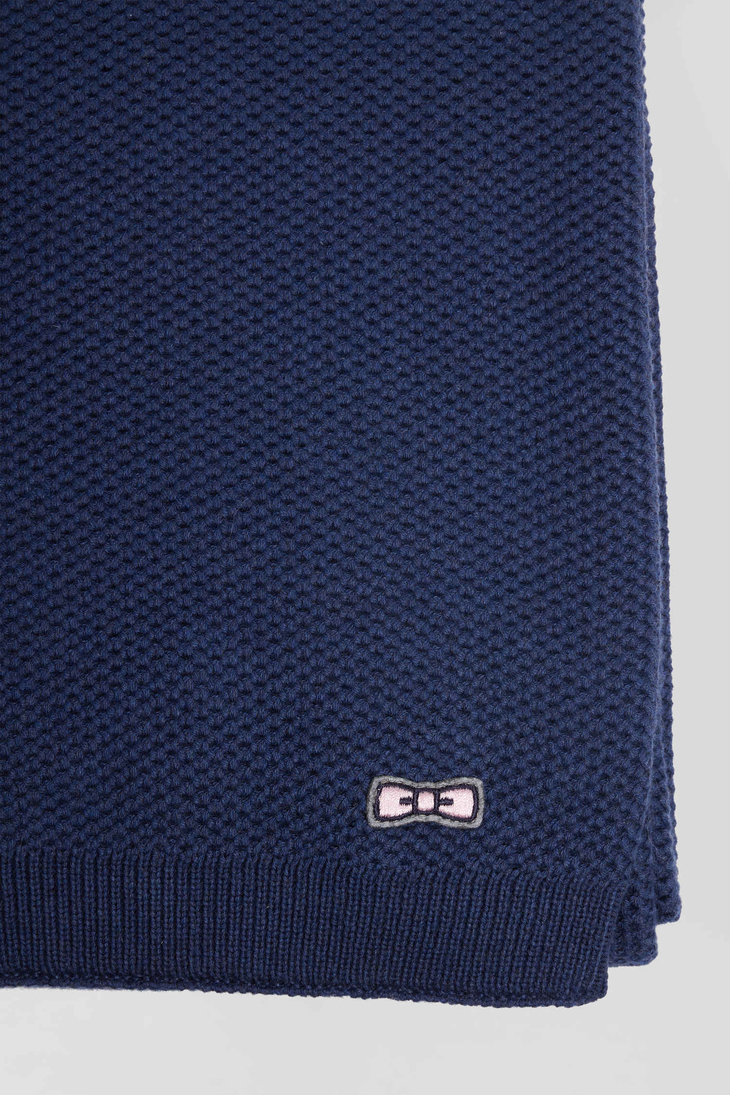 Wrap yourself softly in this comfortable 100% cotton scarf. Available in 3 timeless colors, this elegant plain scarf features our emblematic pink bowtie embroidery, which will be revealed by tying this scarf over a winter coat or parka.