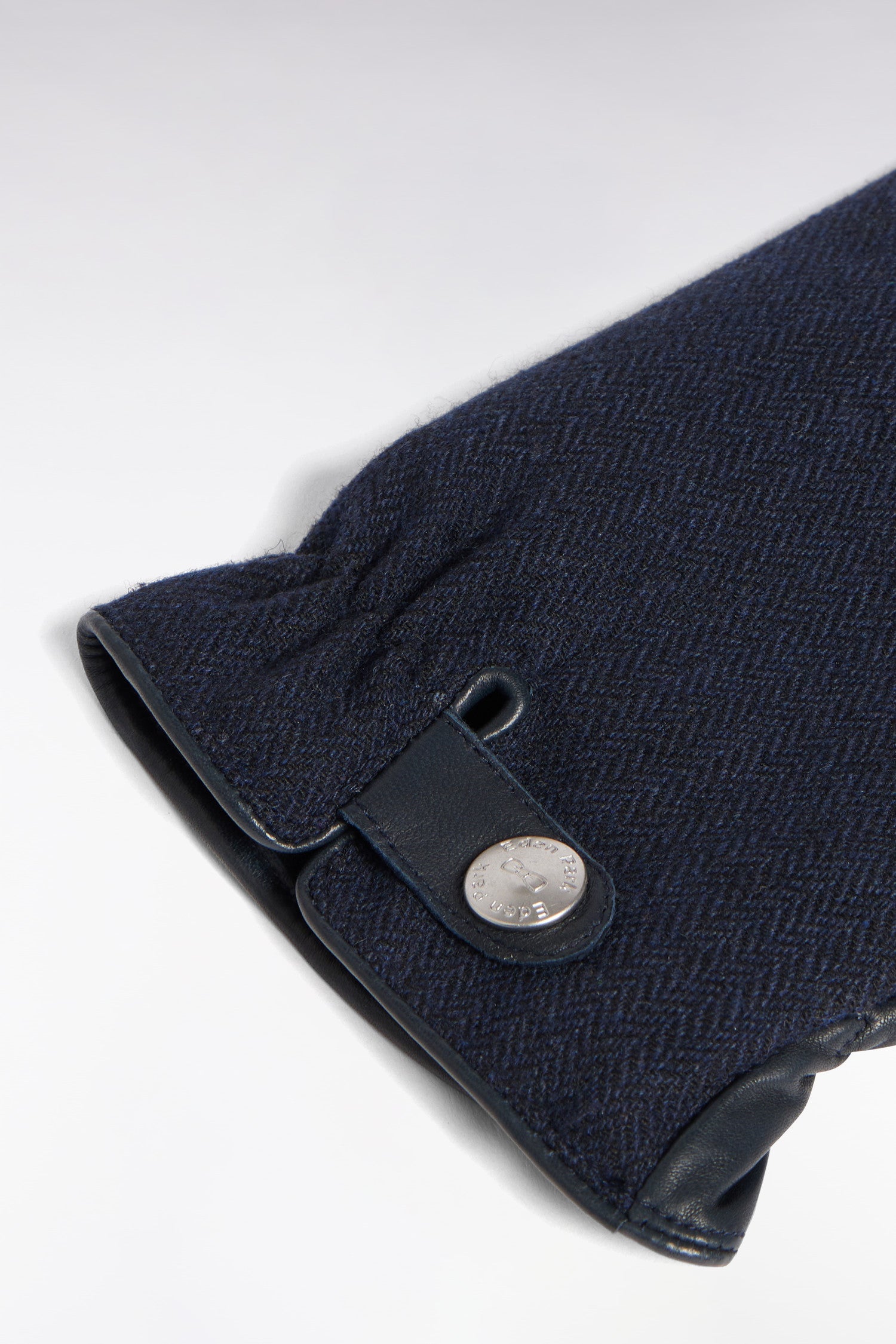 Leather and navy herringbone gloves