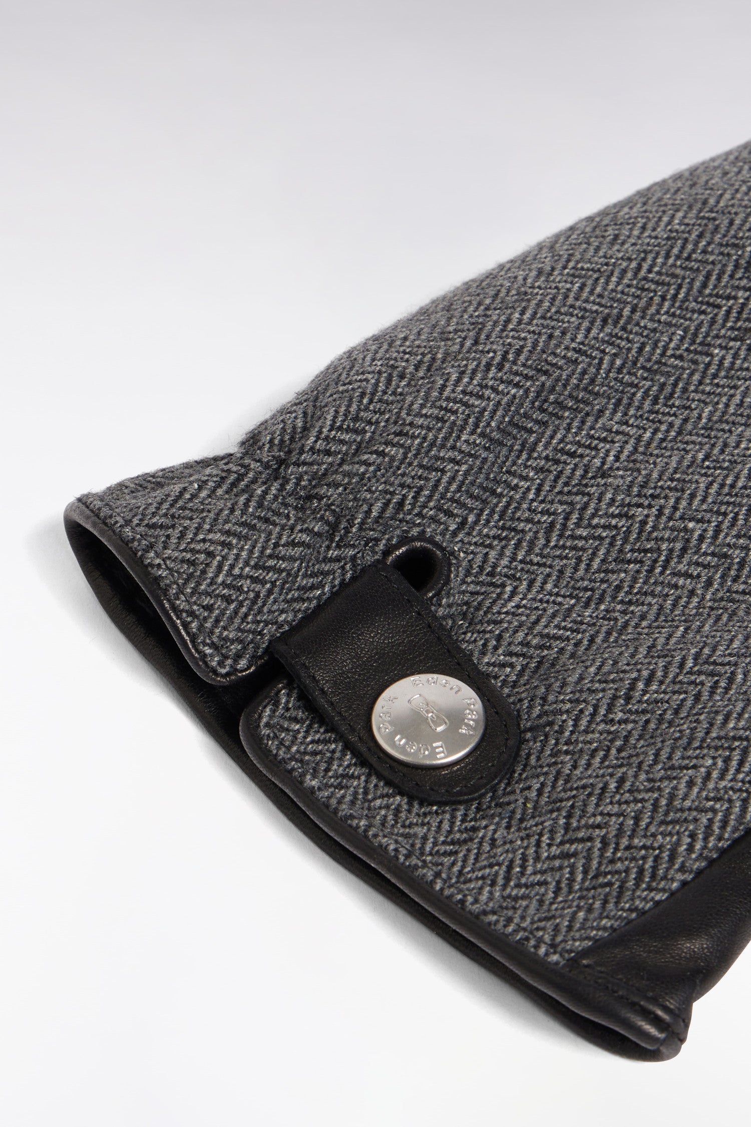 Leather and black herringbone gloves