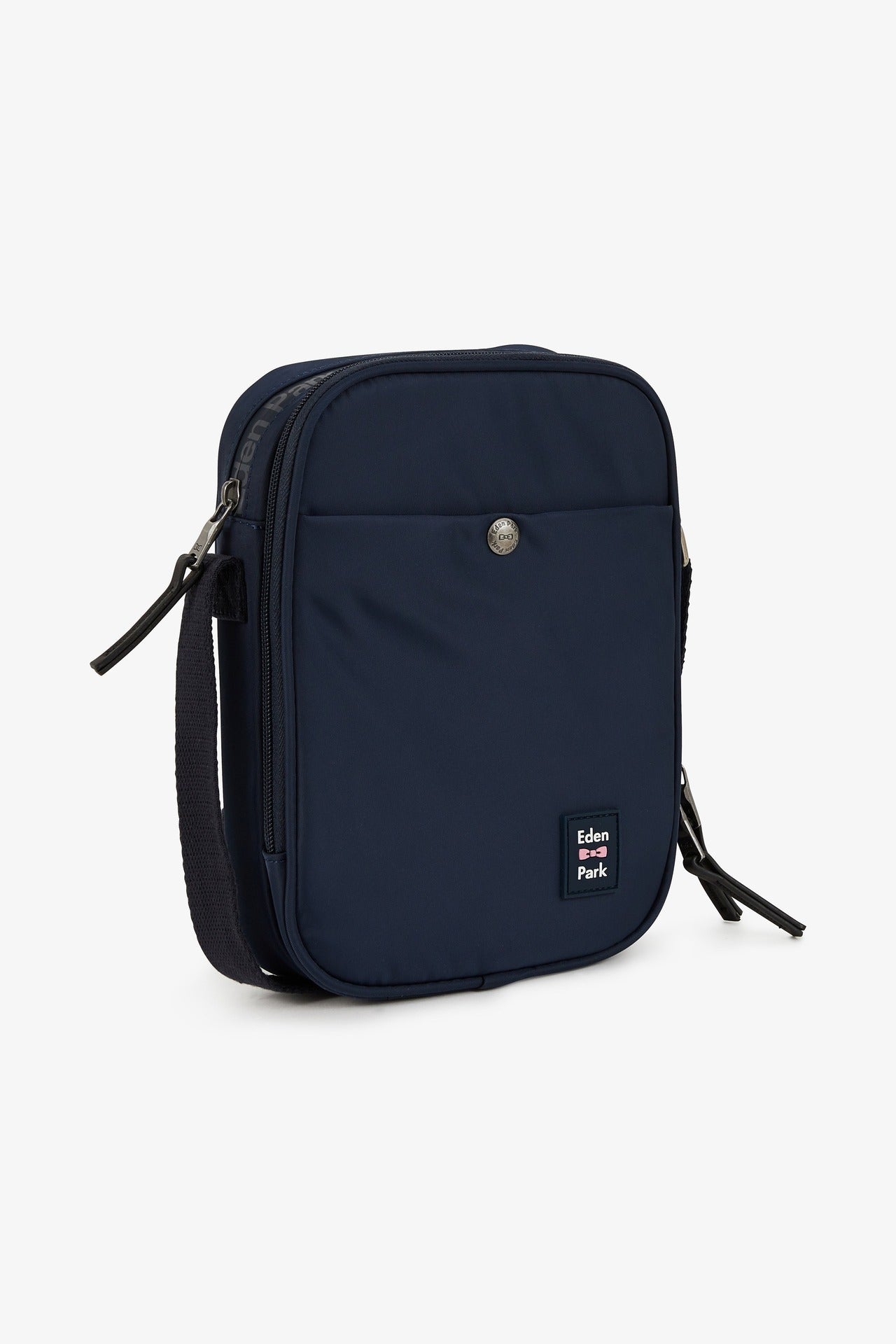 • Exterior front pocket with a metal buckle engraved with Eden Park