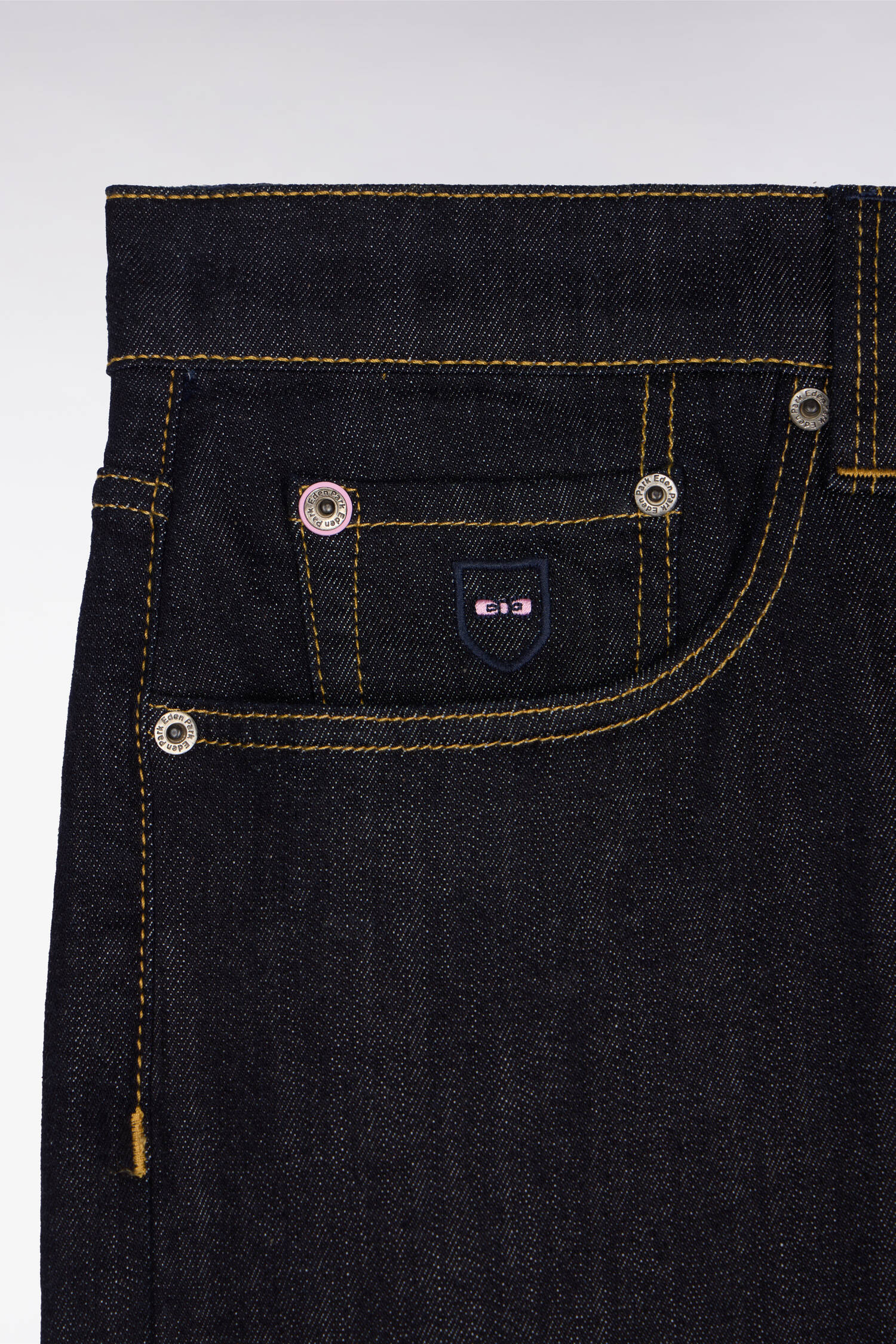 These stretch-cotton jeans have two western front pockets and a front coin pocket with an embroidered Eden Park crest, 2 patch back pockets, button fastening and a signature Eden Park leather tag on the back