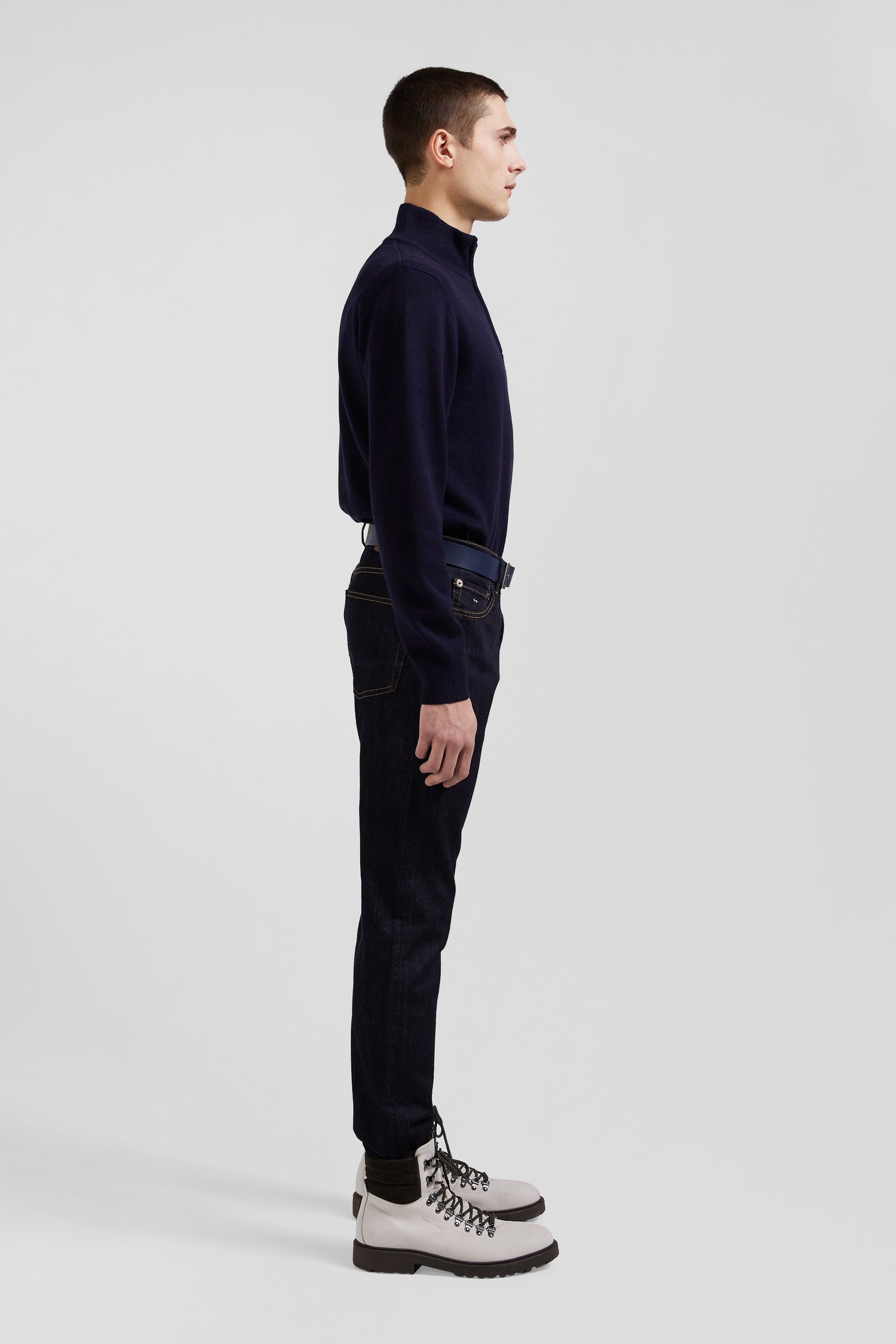 These 5-pocket straight-leg jeans in raw denim combine elegance and simplicity. Ideal for all occasions, these blue jeans feature our signature finishings emblematic of our French denim expertise and tobacco-colored contrast stitching for an authentic look.
