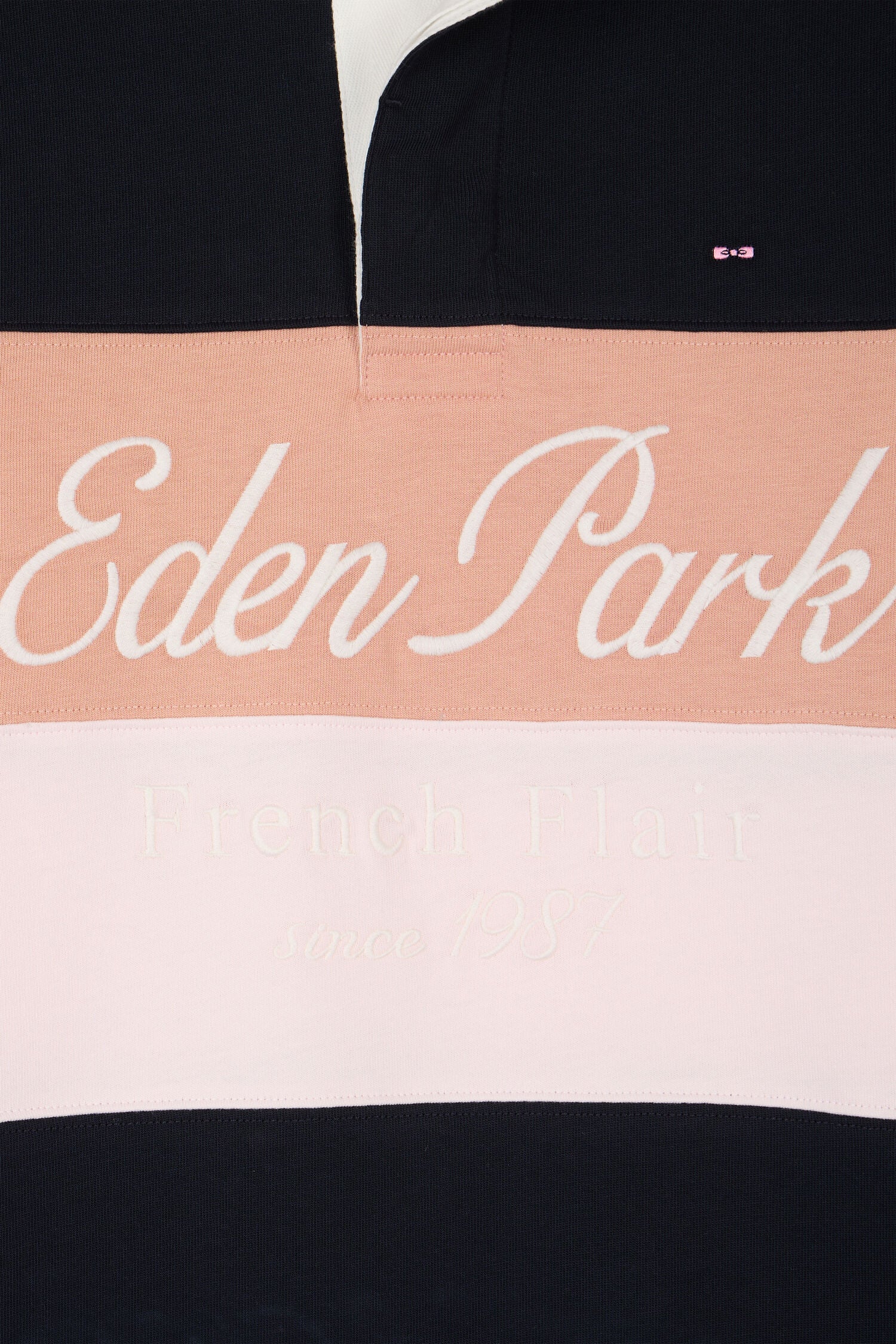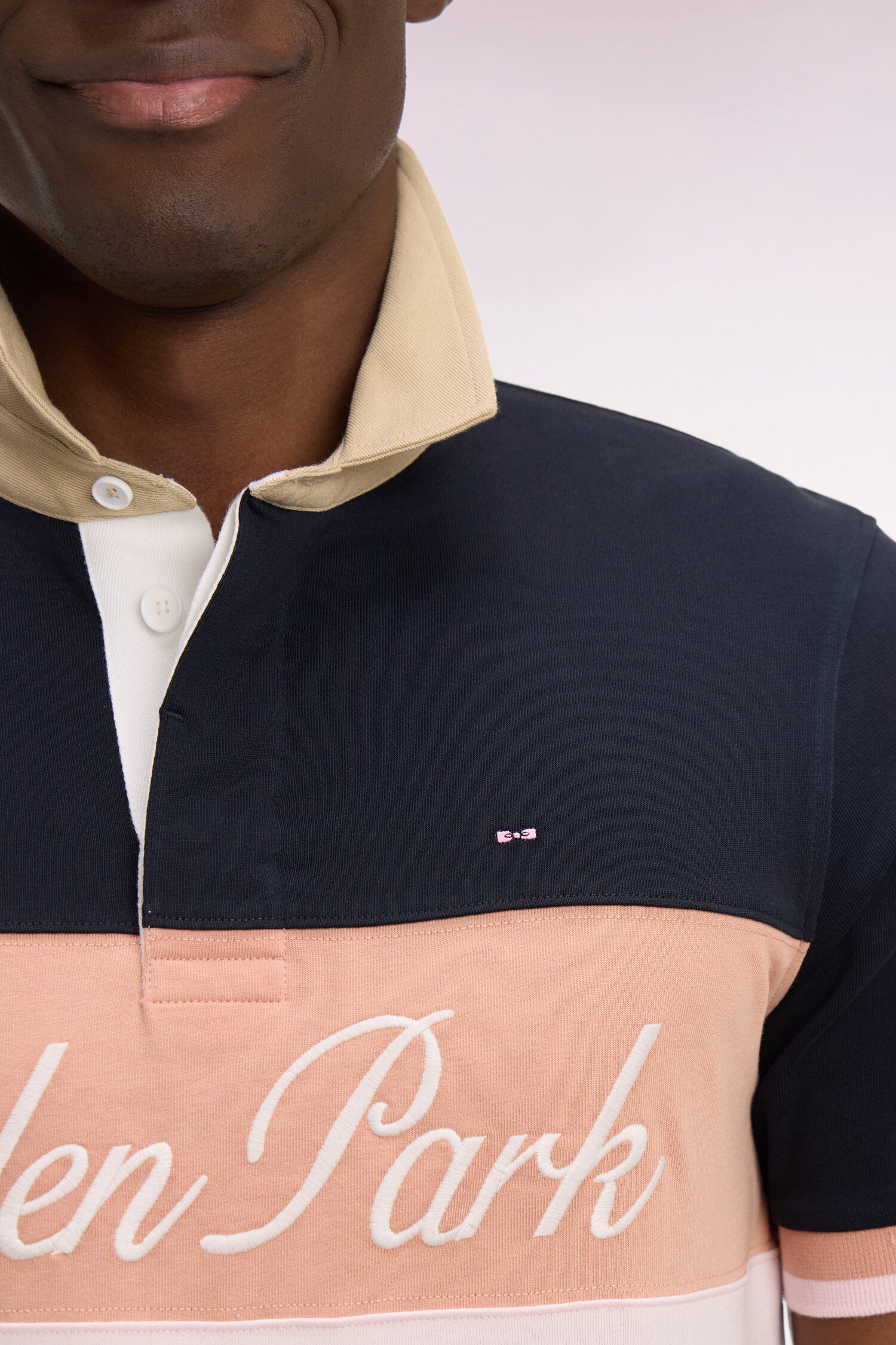 Maillot à manches courtes marine à découpes pastel et broderie coupe regular