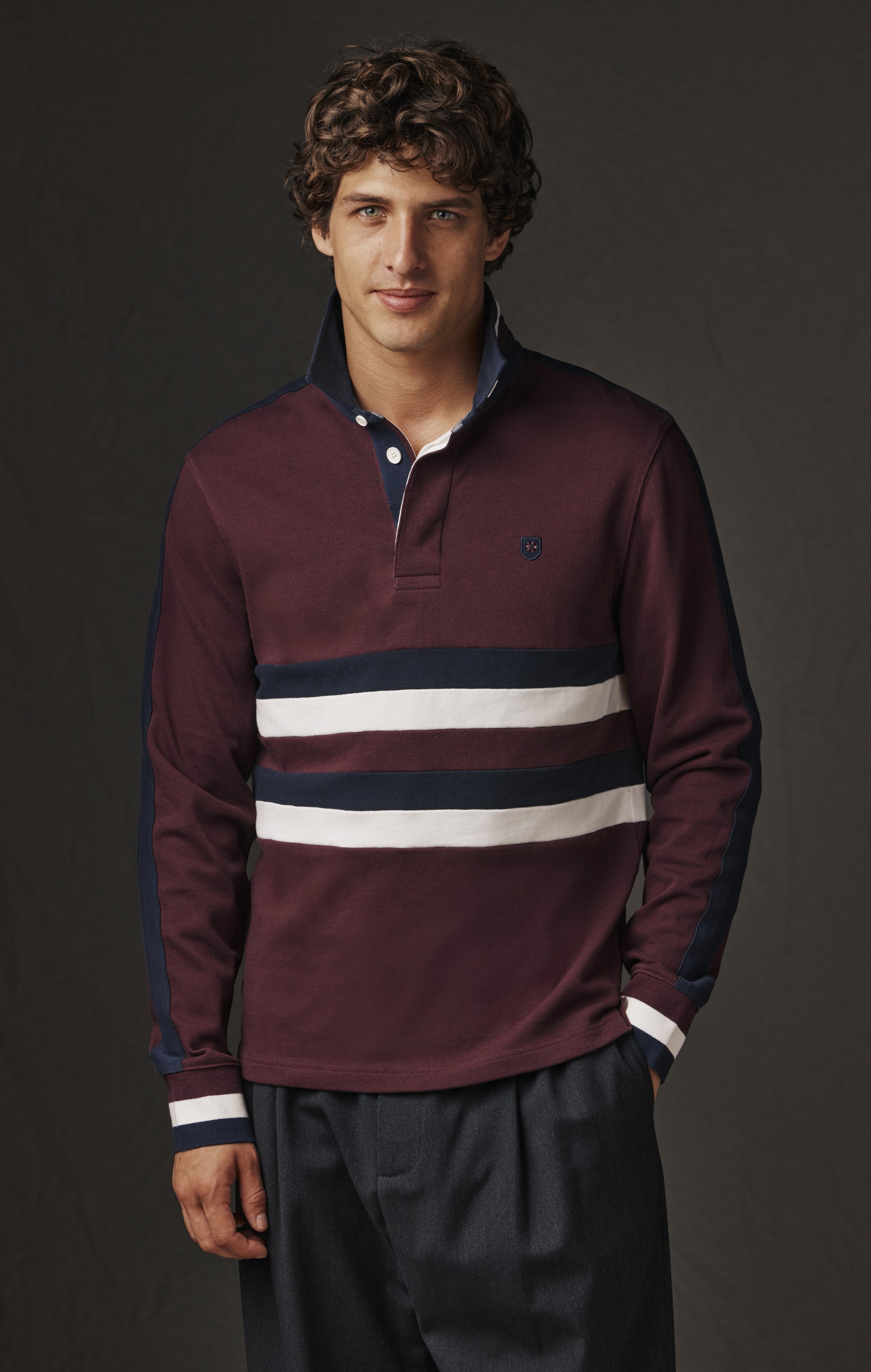 Ce maillot à manches longues bordeaux a été imaginé comme une pièce upcyclée unique, fruit du travail artisanal de notre atelier parisien. À partir d’un maillot bordeaux prélevé dans nos stocks dormants, notre cheffe d'atelier a créé une pièce exclusive agrémentée d'un double jeu de rayures horizontales créées à partir de chutes de tissus blanc et marine. Ce jeu de contrastes vient structurer la silhouette et fait subtilement écho aux finitions des poignets en bords-côtes comme au galon marine soulignant les manches. Conçu pour valoriser les matières sélectionnées par notre Maison pour son vestiaire sport-chic et prolonger leur durée de vie, ce maillot s’inscrit dans une démarche plus engagée. Disponible en un seul exemplaire en taille médium et exclusivement vendu sur notre site, il reflète le savoir-faire et l’esprit French Flair d'Eden Park.