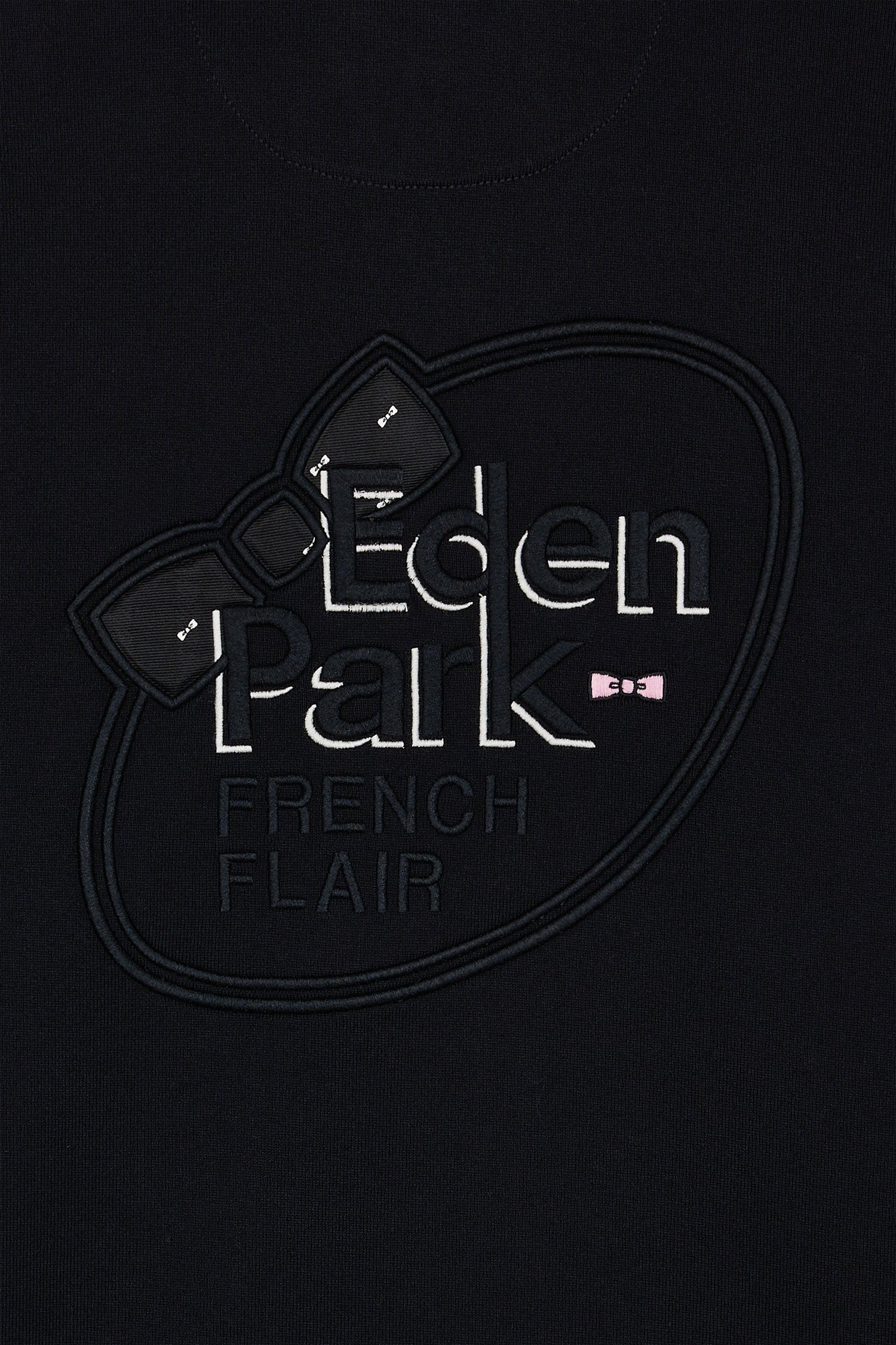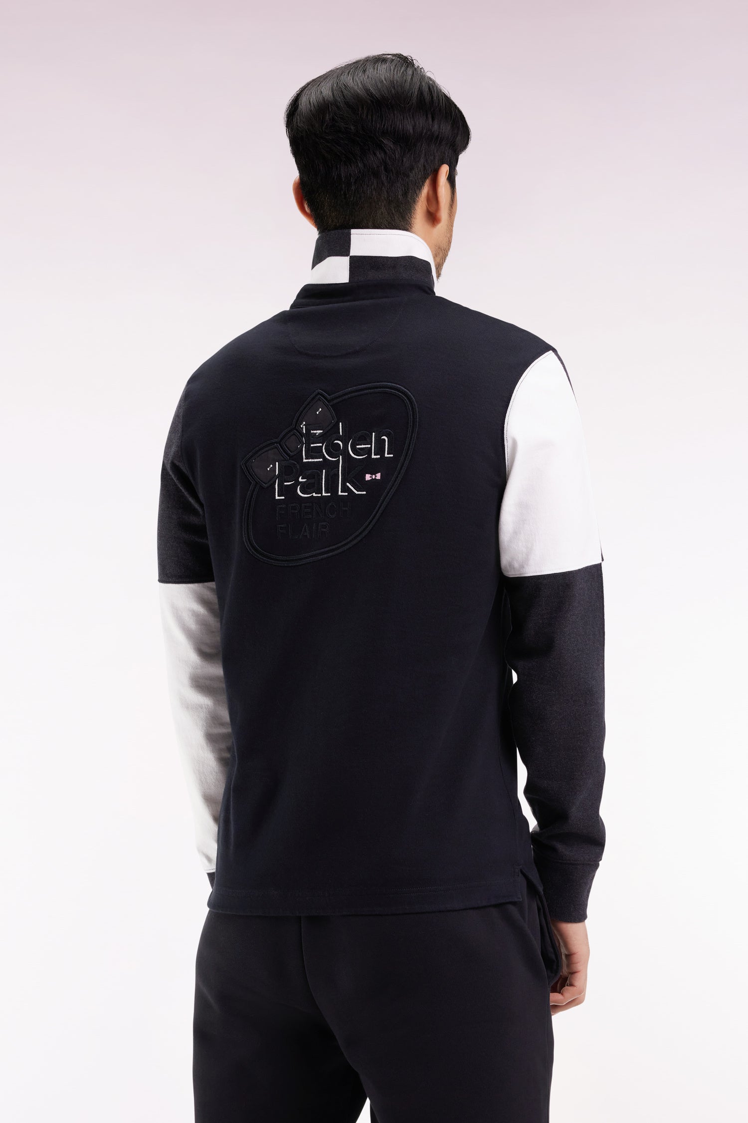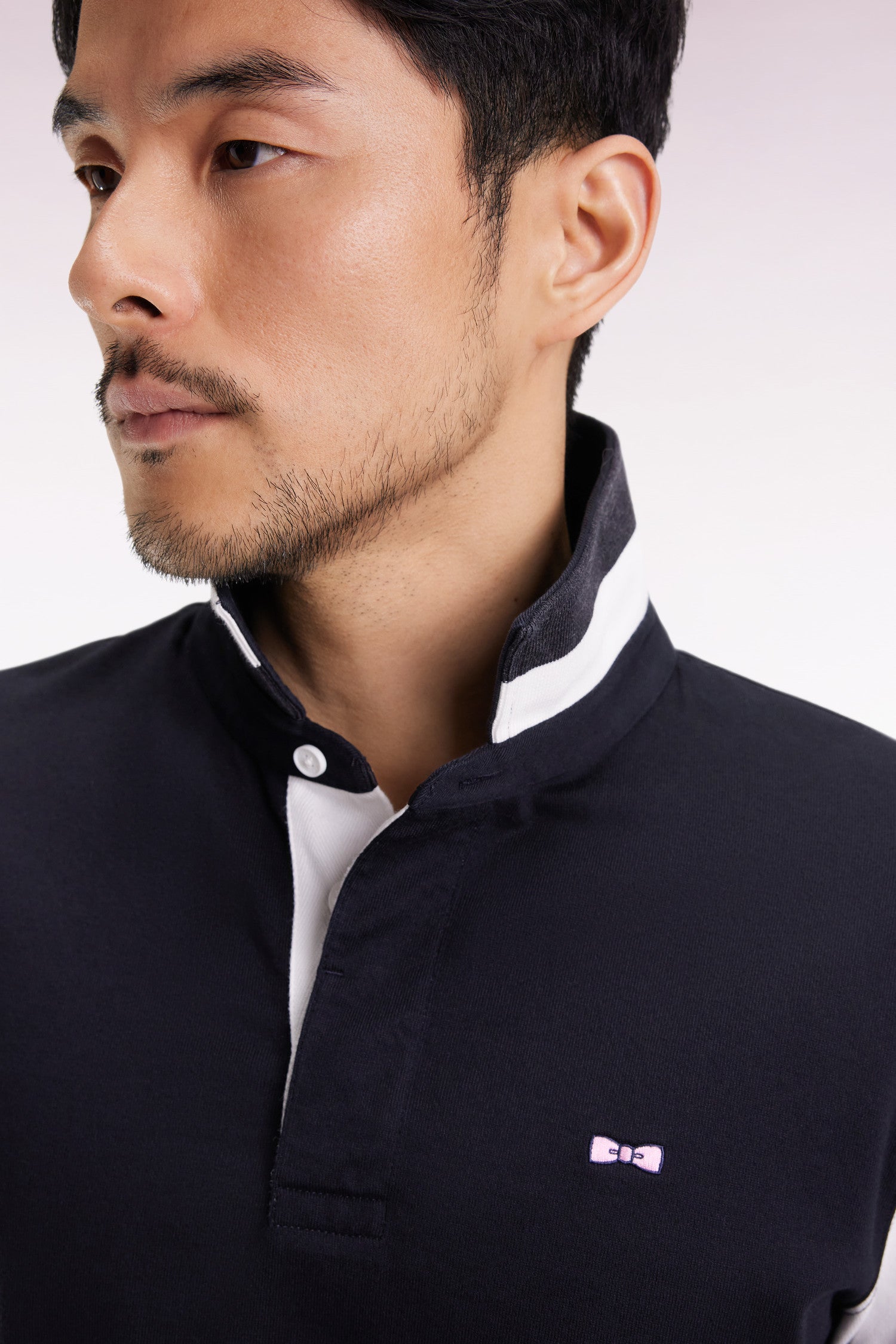 Inspired by the codes of rugby and Eden Park's own style, this long-sleeved jersey in thick jersey plays the contrast card with its emblematic colored cut-outs on the sleeves and collar. On the back, an exclusive embroidery, with inlays of tie fabric with butterfly microknots, asserts the character of this sporty-chic jersey. The structured collar blends twill and colorblock knit, a contrast reinforced by a matching neckband.