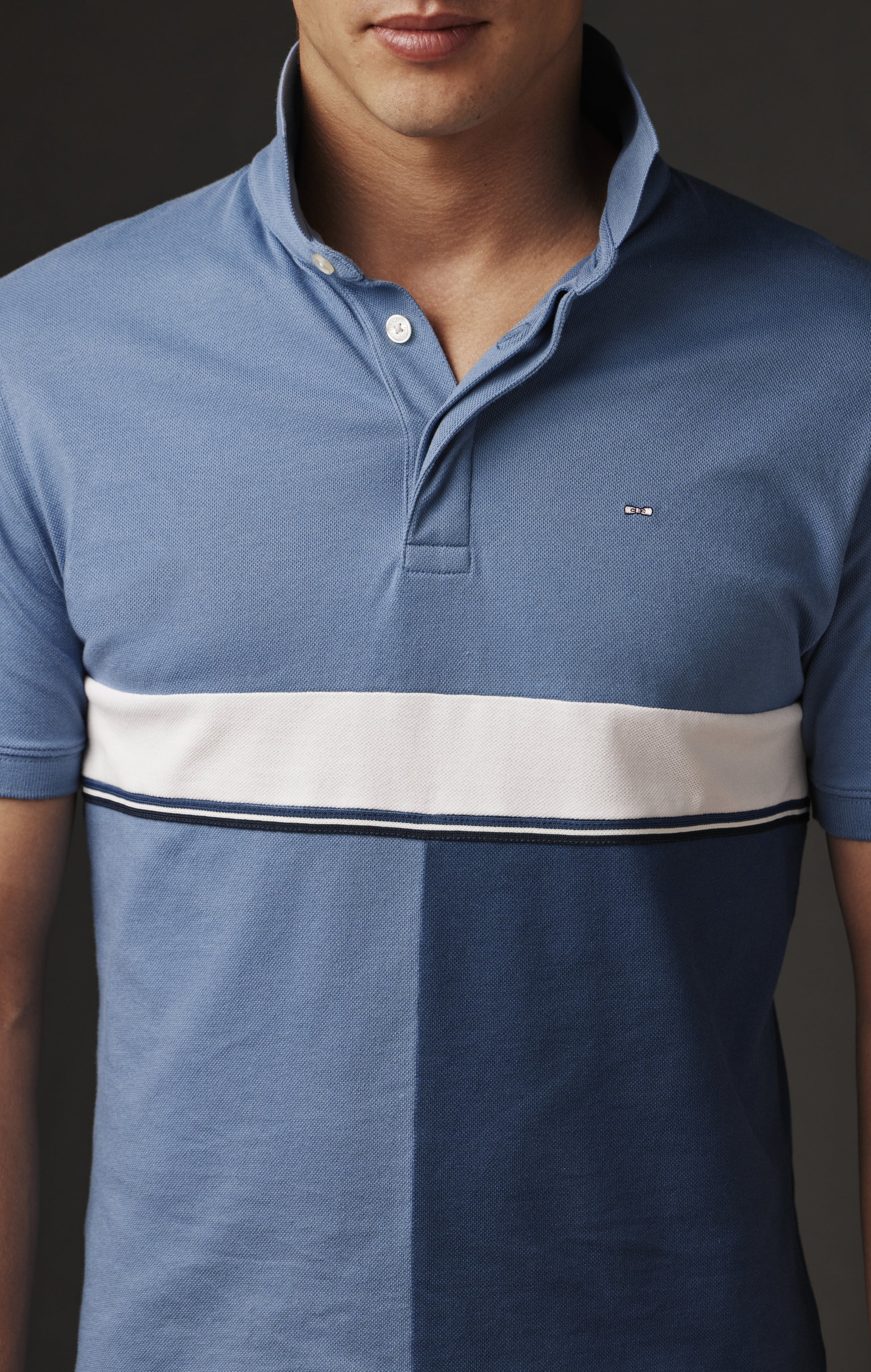 For this short-sleeved jersey from our new Pap'Atelier capsule, our Parisian atelier has imagined a graphic play that mirrors a second model. Both are based on two stretch cotton jerseys, one light blue, the other dark blue, carefully selected from our archives. Each model combines these shades, reversing their placement to create an original contrast. Cut and reassembled in patchwork, the panels are enhanced by a striped braid and a white stripe, both from our dormant stocks. This unique light-blue upper-body model, available only in size M and as a one-off on our site for a limited time, illustrates Eden Park's commitment to sublimating every resource and offering sustainable fashion with a singular style.