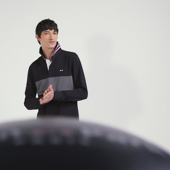 This men's long-sleeved jersey has a straight Regular cut and is made from cotton jersey for comfort and ease of movement. Its color scheme and hooped trim under the collar add a touch of elegance. An emblematic detail, the sleeve 10 embroidery with hooped tie fabric, and the plain tie fabric neckband, celebrate the heritage of French rugby with a modern twist, paying homage to the jersey number worn by Franck Mesnel, our founder.