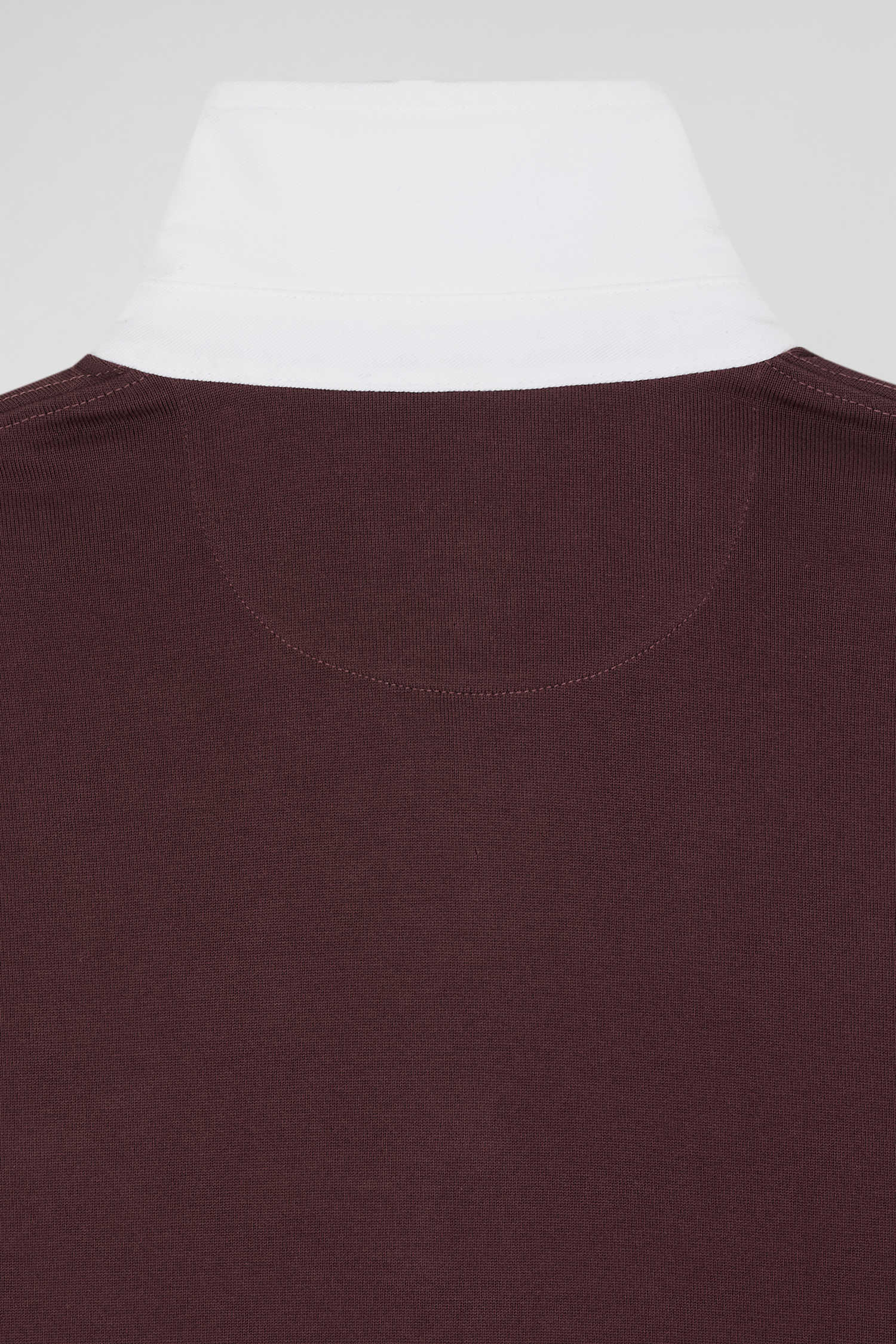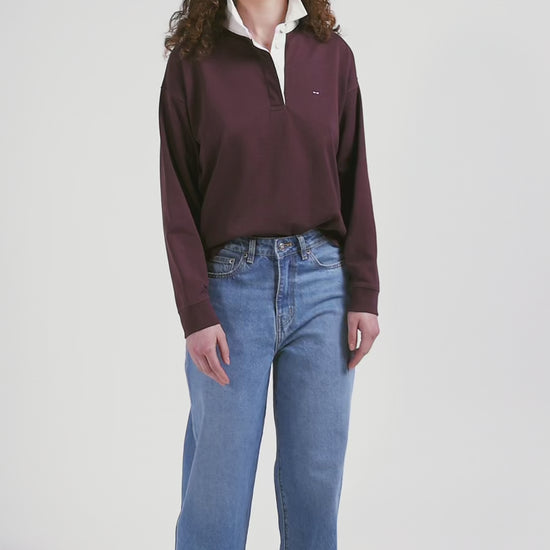 Relaxed burgundy long-sleeved cotton rugby shirt