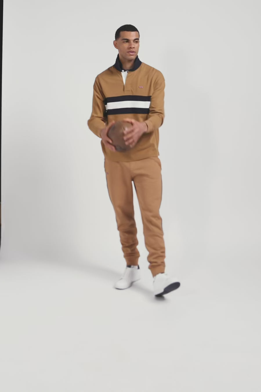 Relaxed camel embroidered long-sleeved cotton rugby shirt