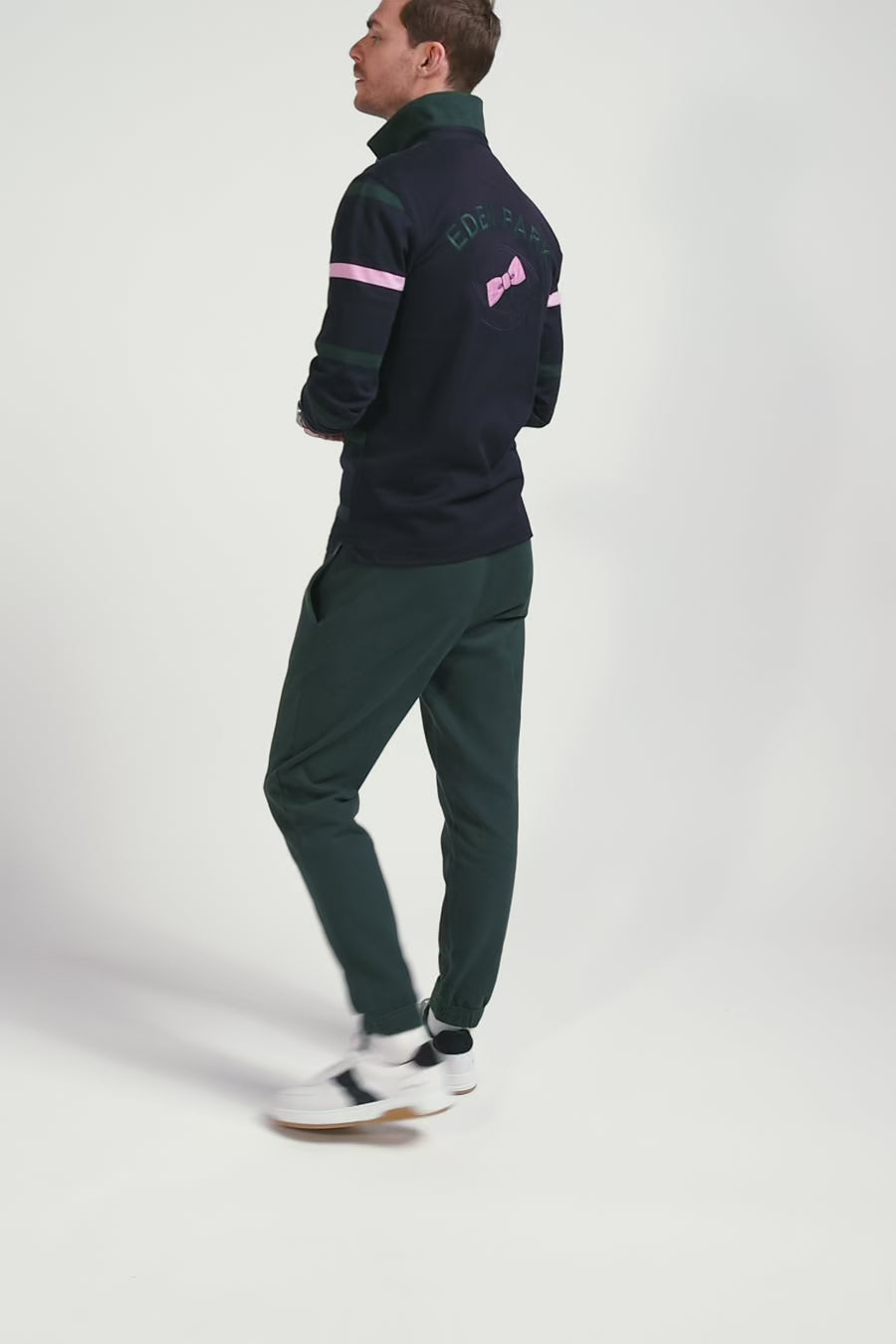 • Pink bowtie emblem embroidery