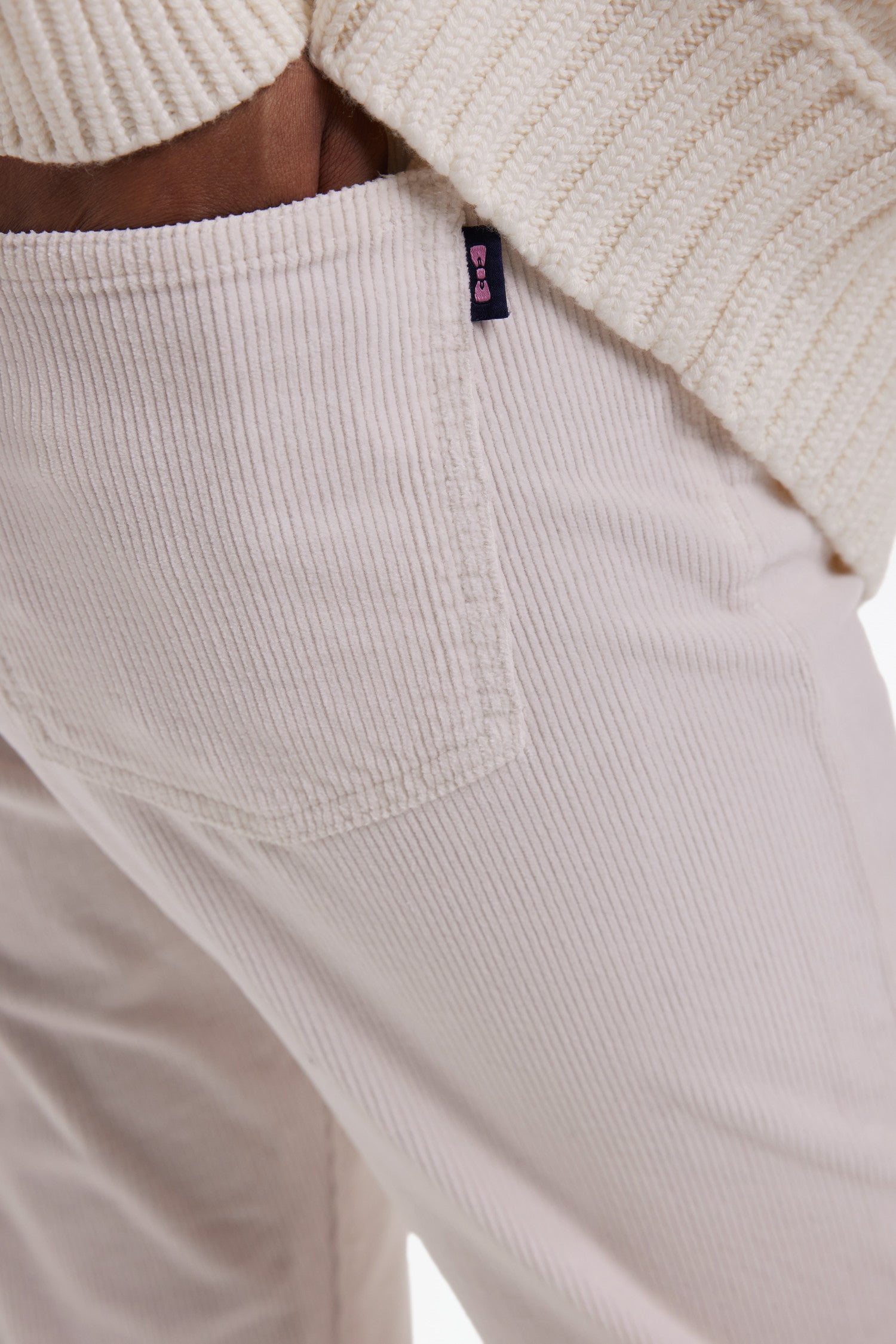 Ecru corduroy 5-pocket pants