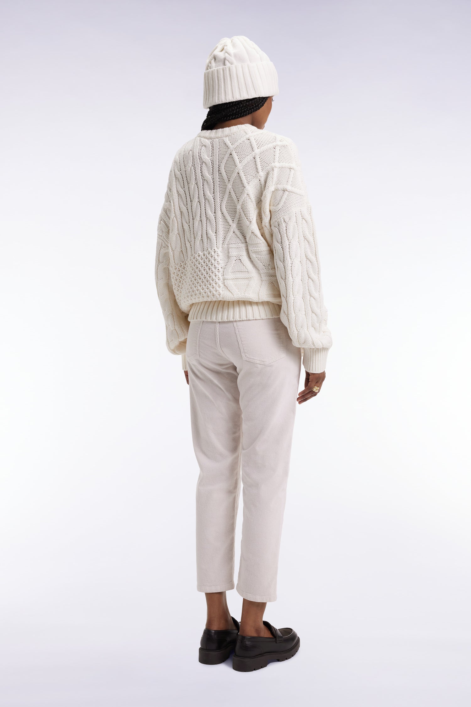A chic-casual alternative to denim, these 5-pocket corduroy pants come in ecru or black for a soft workwear look. Their 7/8 length and slim fit make them easy to wear, ideal for getting through the fall-winter season in style.