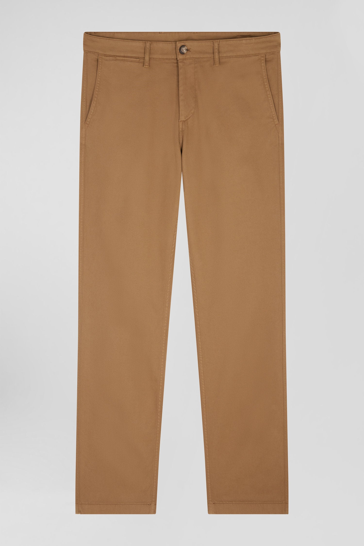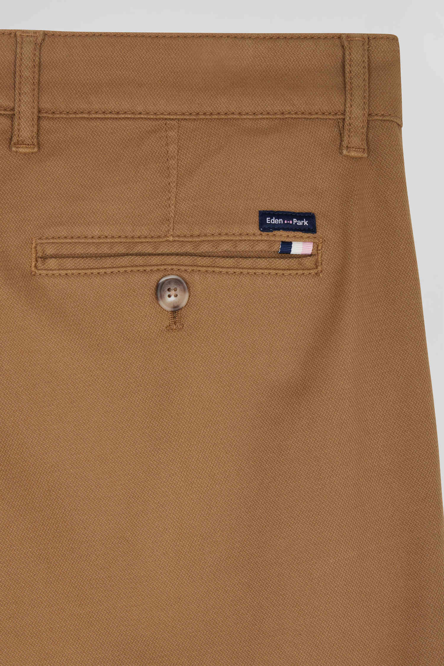 Easy to match with all your autumn-winter outfits, our wrinkle-free chino in stretch cotton piqué and modal offers comfort and elegance. Available in a wide range of colors, these straight-cut regular-fit pants feature refined details such as a tricolor ribbon and the Eden Park label on the back pocket, reflecting the expertise and identity of our French fashion house.