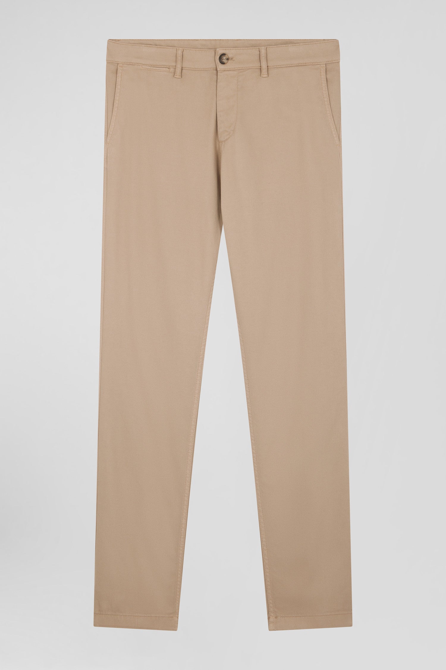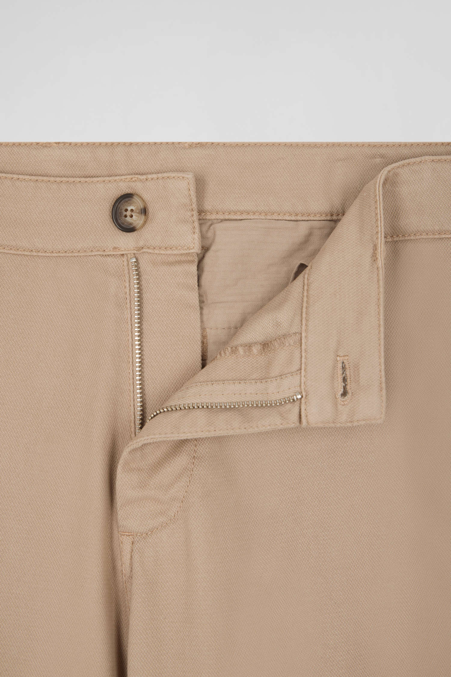 Regular hemp-coloured stretch cotton piqué and modal chino trousers