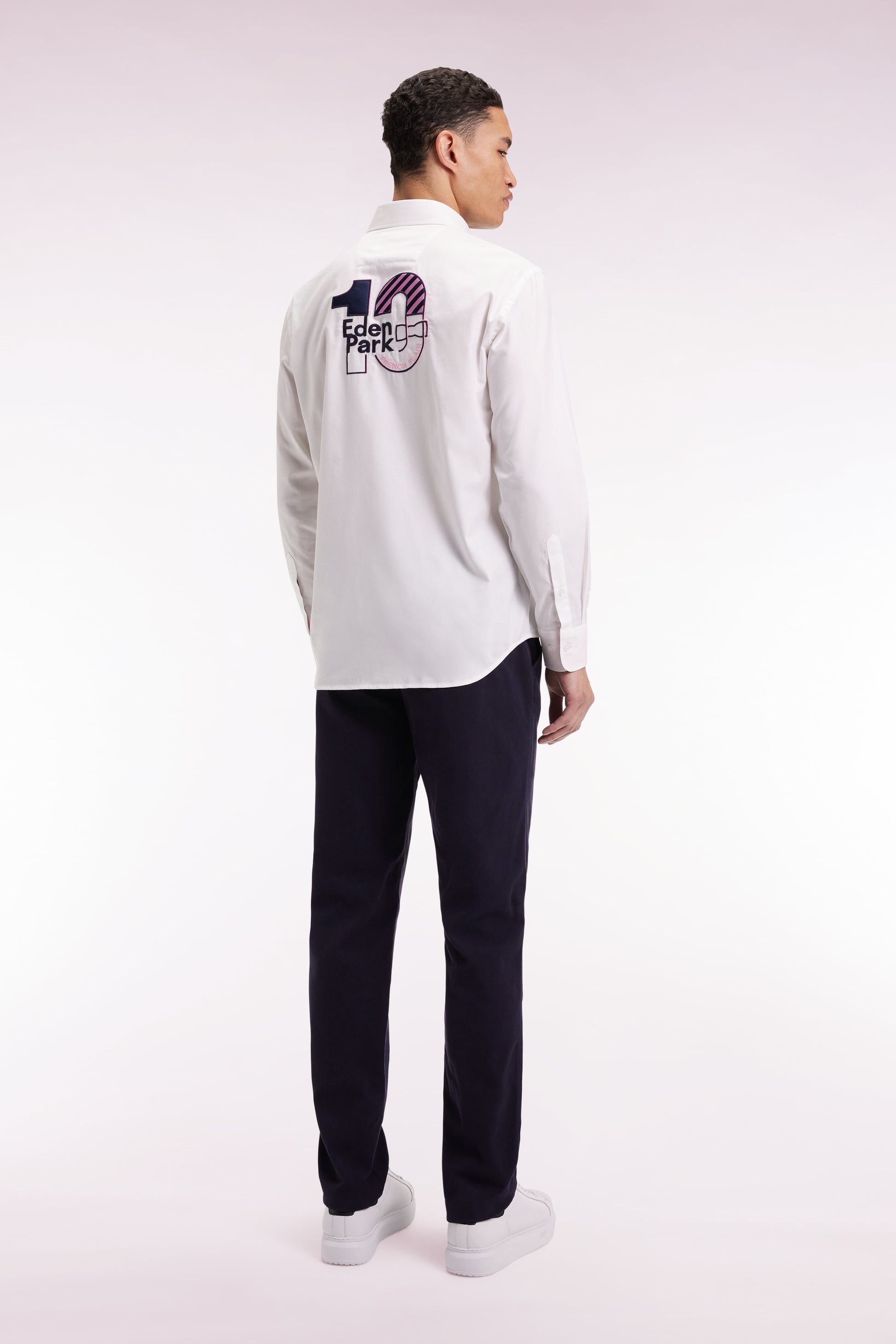 White cotton pinpoint shirt embroidery 10 back straight cut
