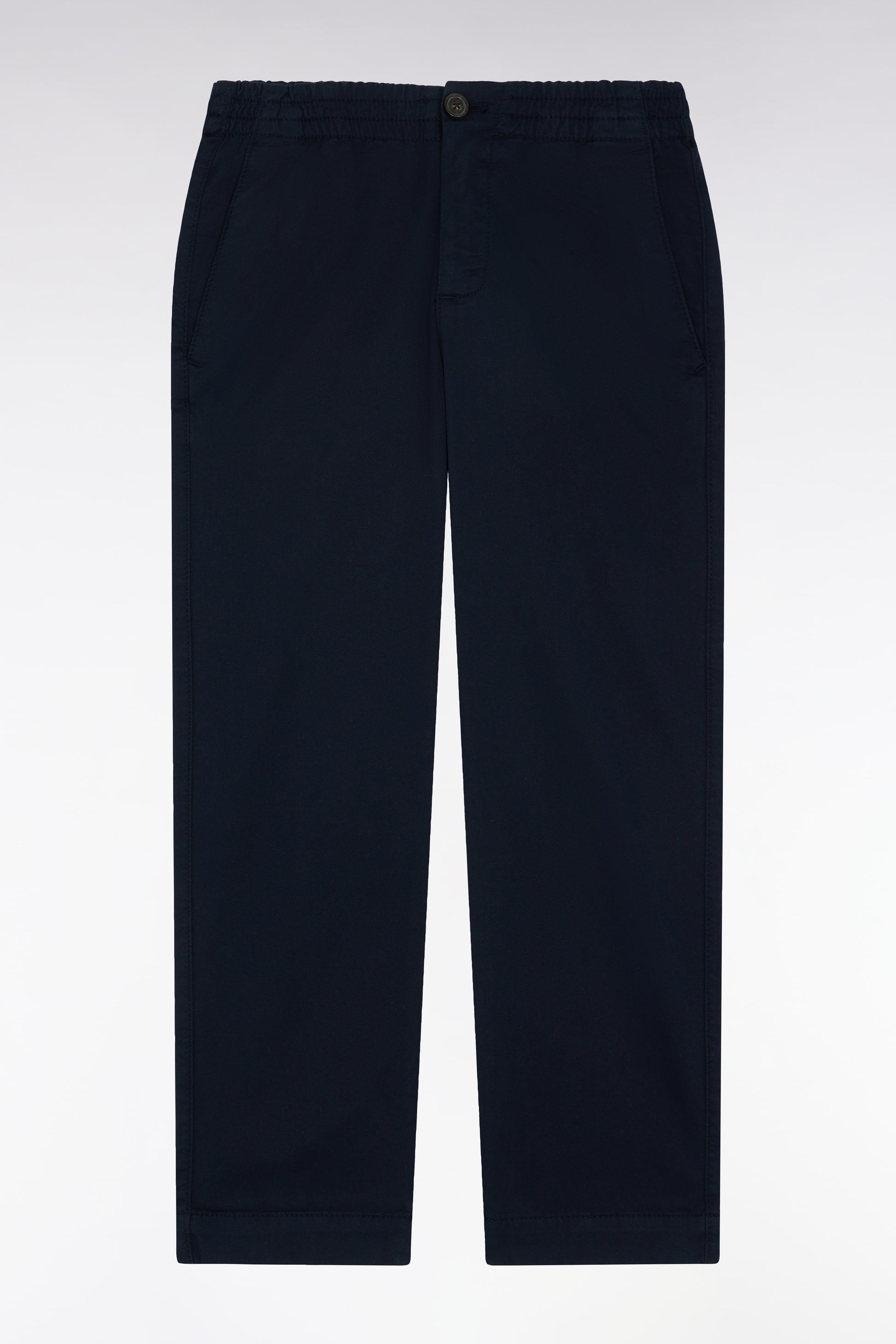 An essential piece for men's wardrobes, this stretch cotton chino is available in two timeless shades: camel or navy. Its straight, crease-free cut ensures a clean, comfortable silhouette, easy to combine with your basics or dressier pieces.