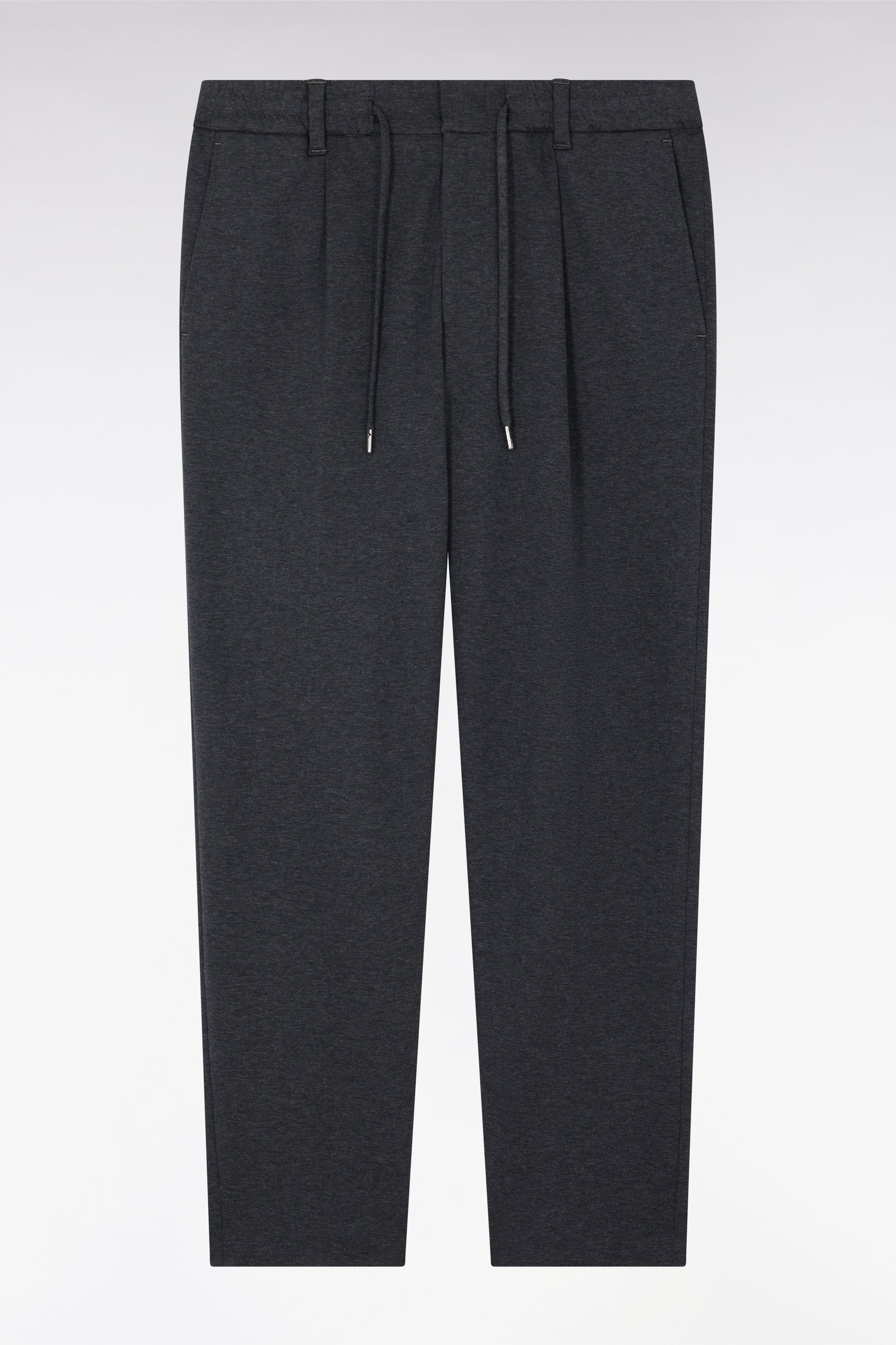 Comfort and modernity perfectly define these double-faced jersey pants woven from stretch cotton. Designed as a casual alternative to a chino and a chic alternative to a jogging suit, they feature a slightly carrot-shaped Modern cut that structures the silhouette while offering ease of movement thanks to an elasticated waistband. An easygoing essential, available in gray or black, to wear from the weekend to the office.