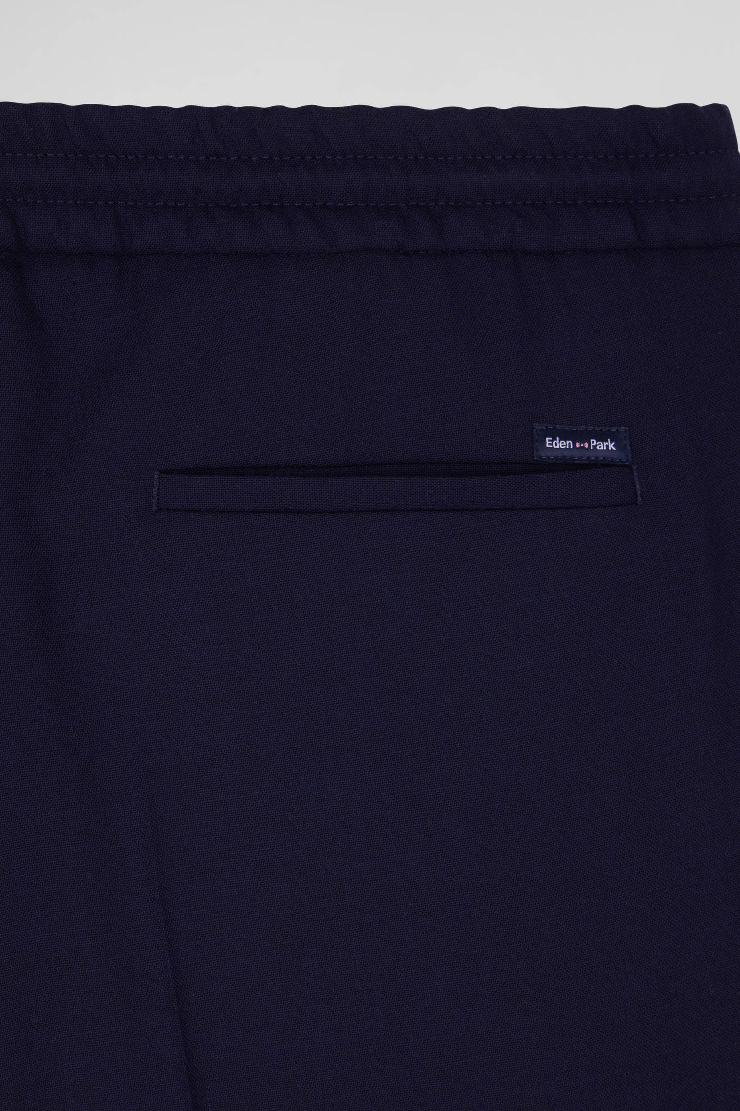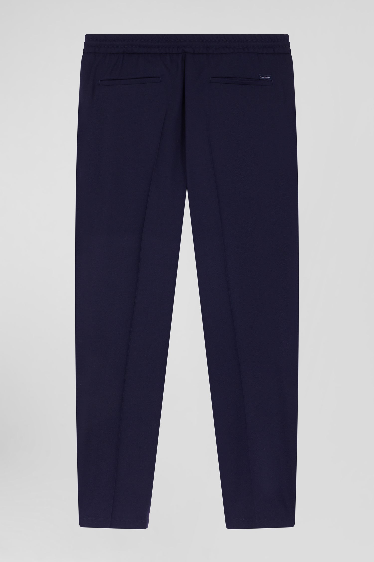 Our navy wool-blend pants in a slightly carrot cut are designed to combine elegance and comfort. With an elasticated waistband, neat finishes such as back welt pockets and a branded label, these chic yet casual men's pants are a fall-winter essential.