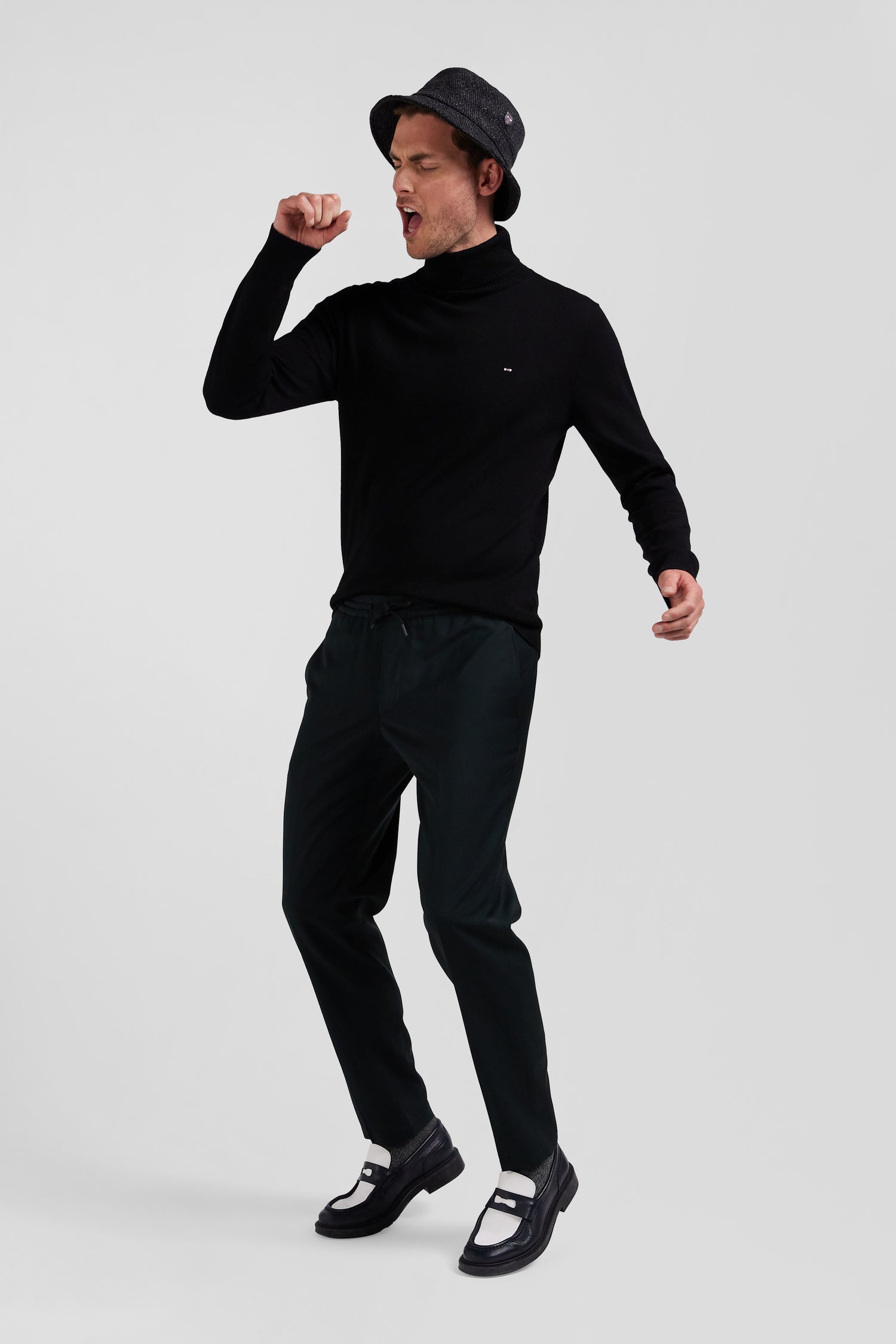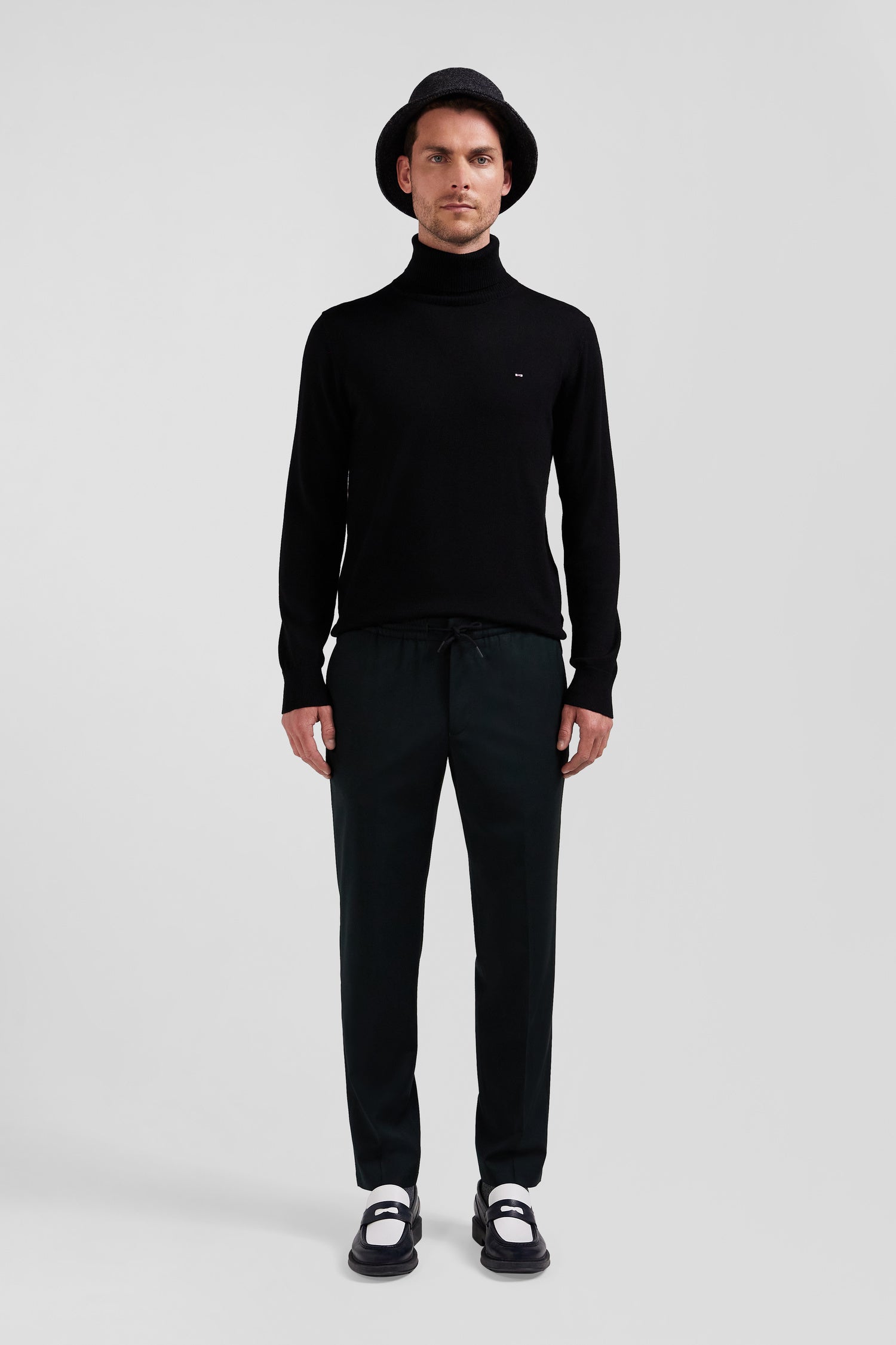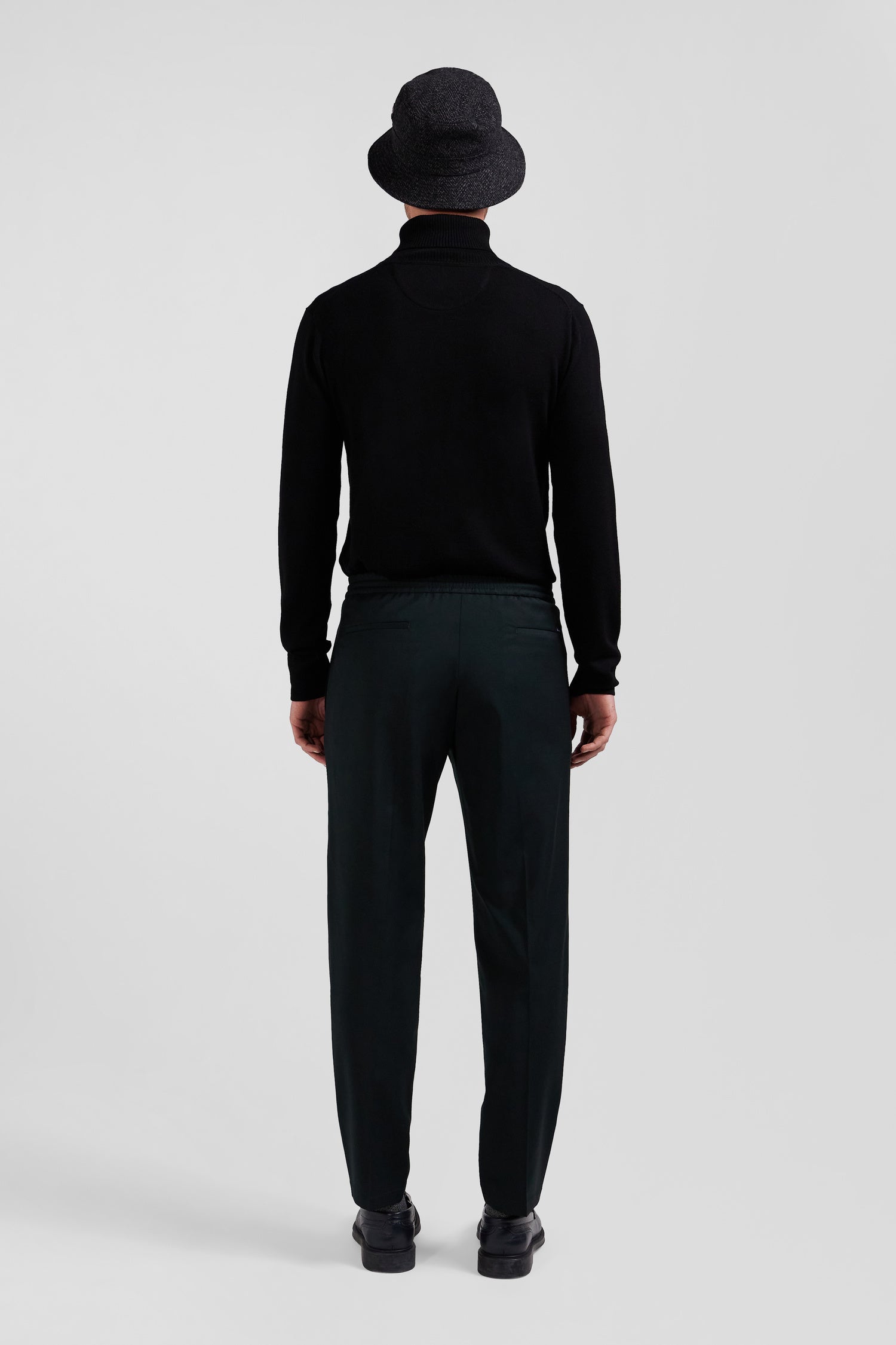 Choose our men's wool-blend pants, combining a slightly carrot cut with practical allure. Inspired by both suit pants and jogging pants, these pants feature an elasticated waistband and neat details such as Italian pockets and welt back pockets, giving the Eden Park man a casual yet elegant look for the cold season.