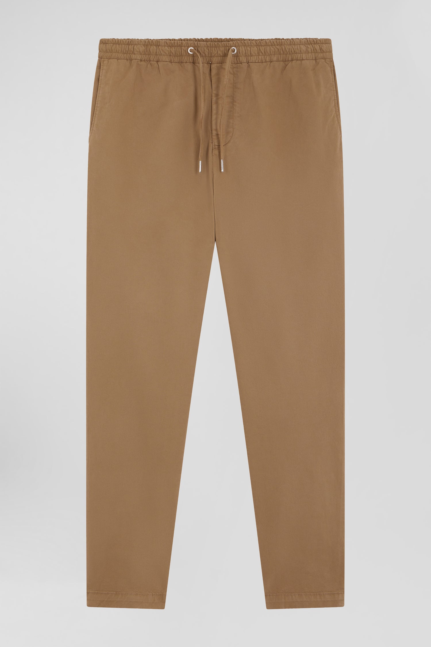 Elastic waistband pants in hazelnut stretch cotton, Modern cut