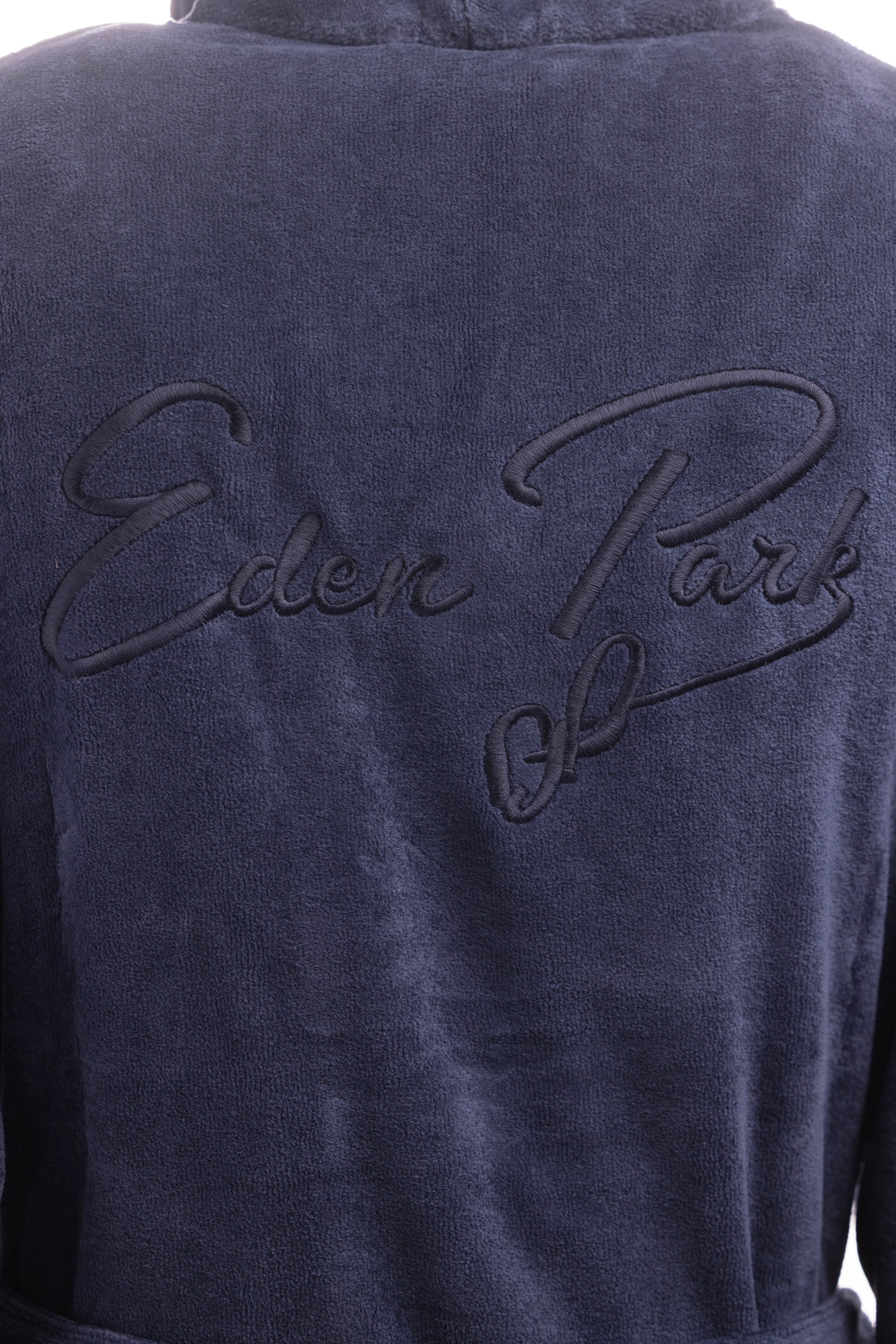 Embroidered navy cotton terry bathrobe - A SHOOTER
