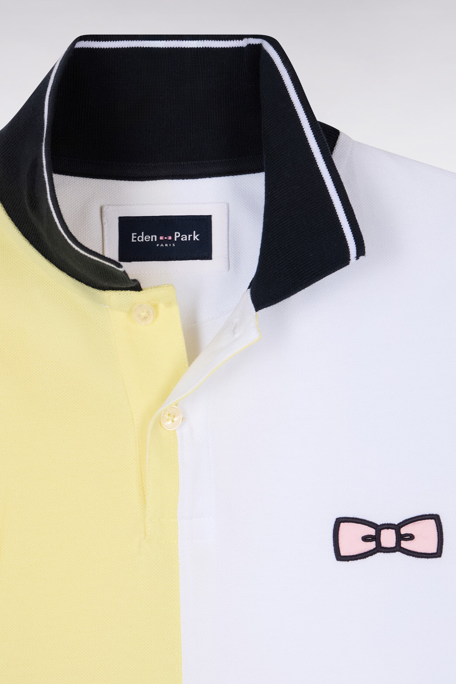 Polo à manches courtes en coton jaune clair à cadrans coupe regular