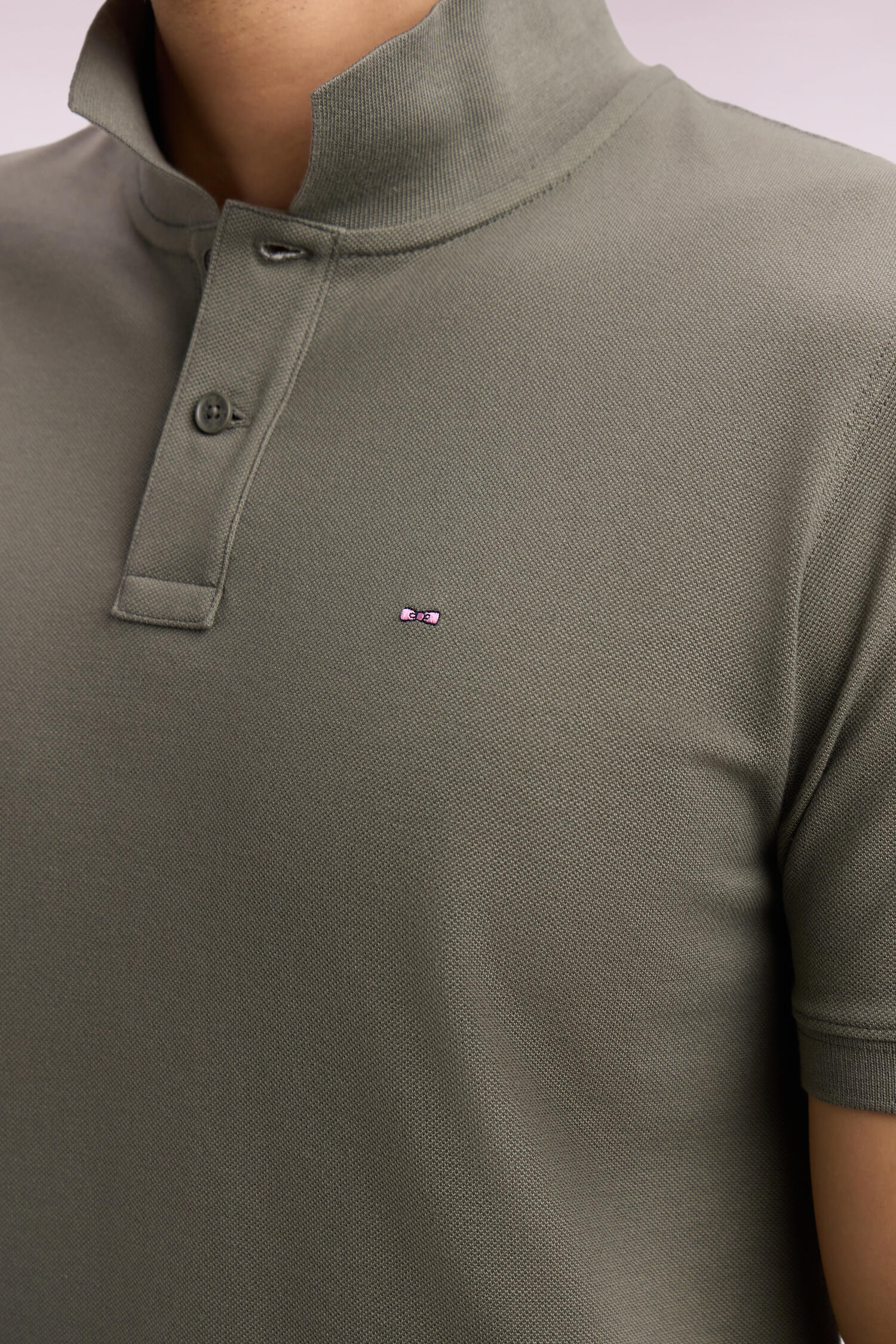 Regular fit medium khaki cotton short-sleeved polo shirt