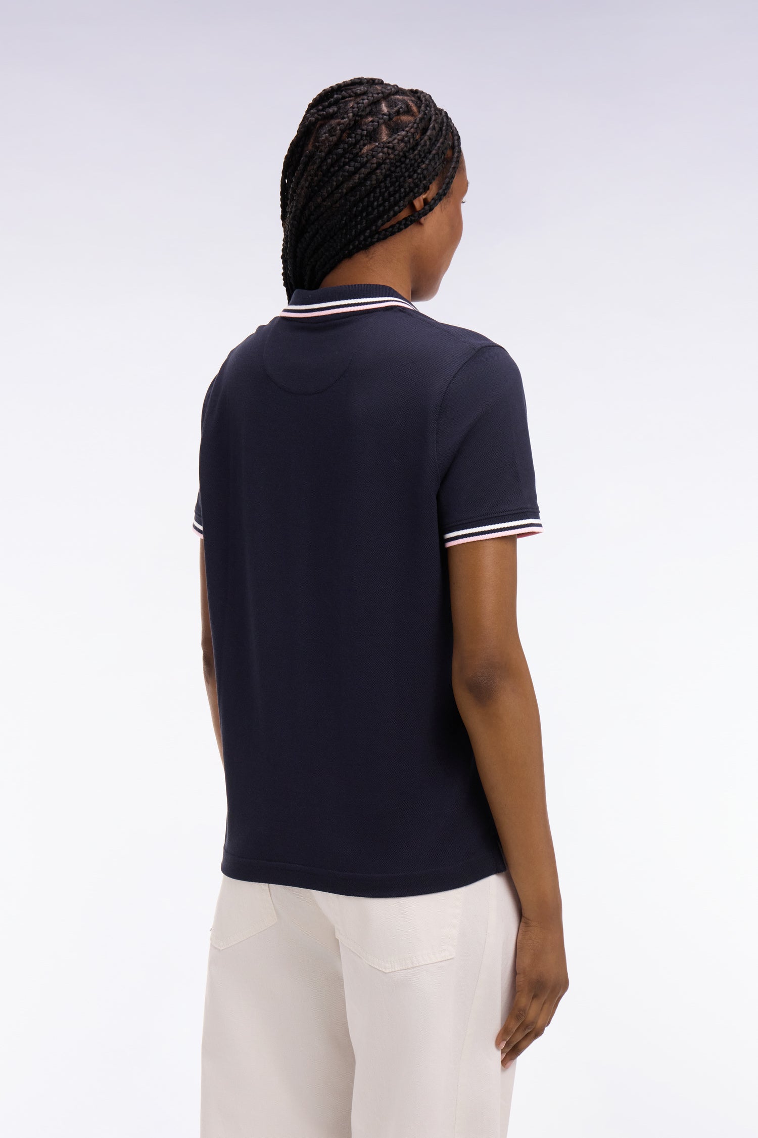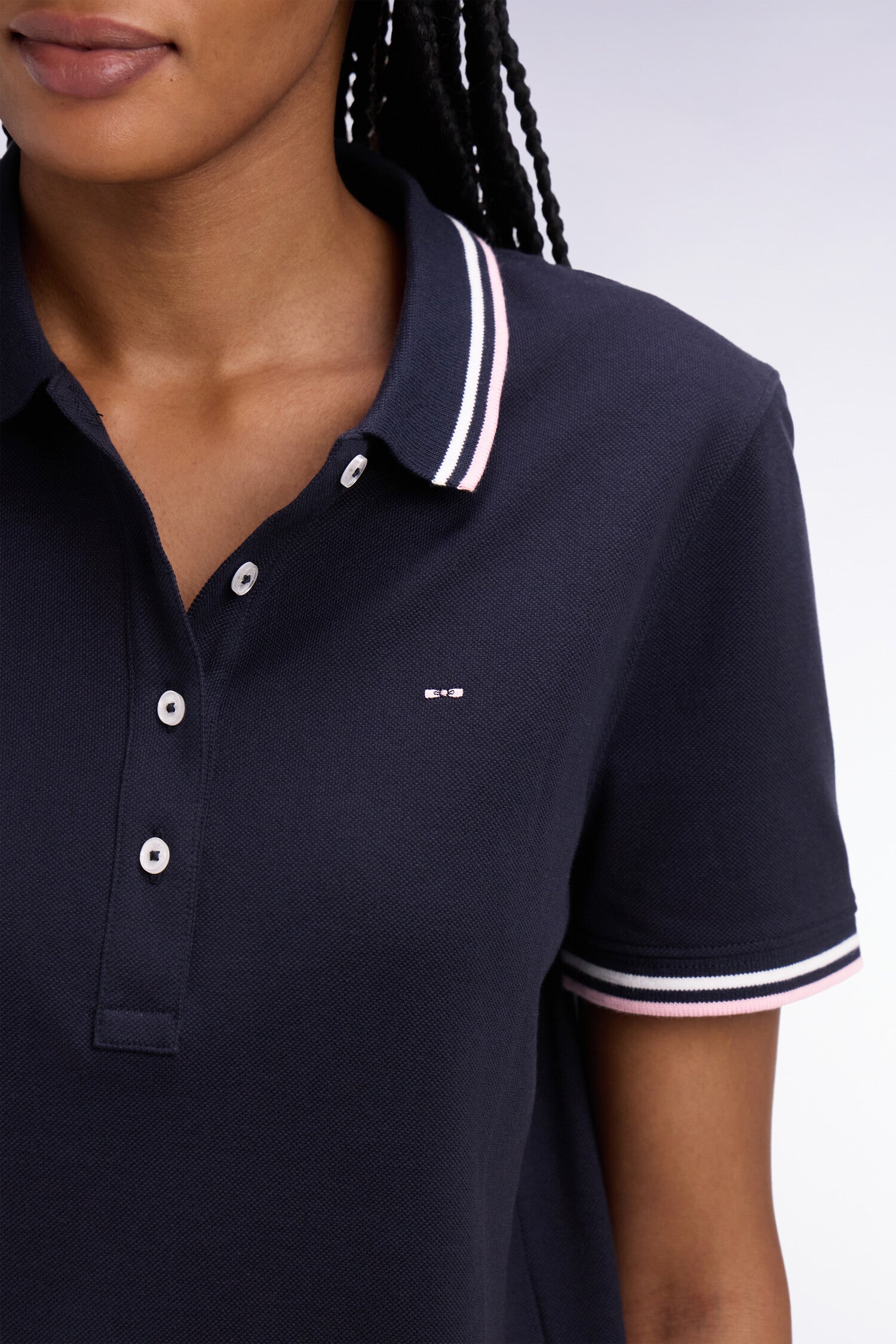 Ce polo à manches courtes en pur coton s’impose comme un incontournable du vestiaire féminin grâce à sa coupe droite confortable et son style sport chic assumé. Son emblème nœud papillon brodé sur la poitrine et ses finitions en bords-côtes à fines rayures au col et manches apportent une touche subtilement sportive et féminine. Décliné en plusieurs coloris doux ou plus contrastés, ce polo femme s’associe naturellement à un jean droit, un bermuda tendance ou pourquoi pas à notre jupe courte en denim pour une allure urbaine plus travaillée. Ce modèle est également offert dans une coupe slim plus ajustée pour s'adapter à toutes les envies et morphologies.