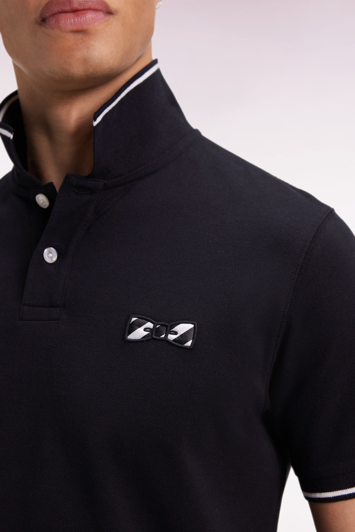 Contrasting collar and sleeve cuffs, elegantly highlighted with a stripe, add an athletic touch to this straight-cut men's polo. For added originality, this model features a large bow-tie embroidery accented with rugby stripes. With the same meticulous finishing as our iconic polo shirts, this cotton polo shirt in three color duos will surprise you with its versatility and comfort.