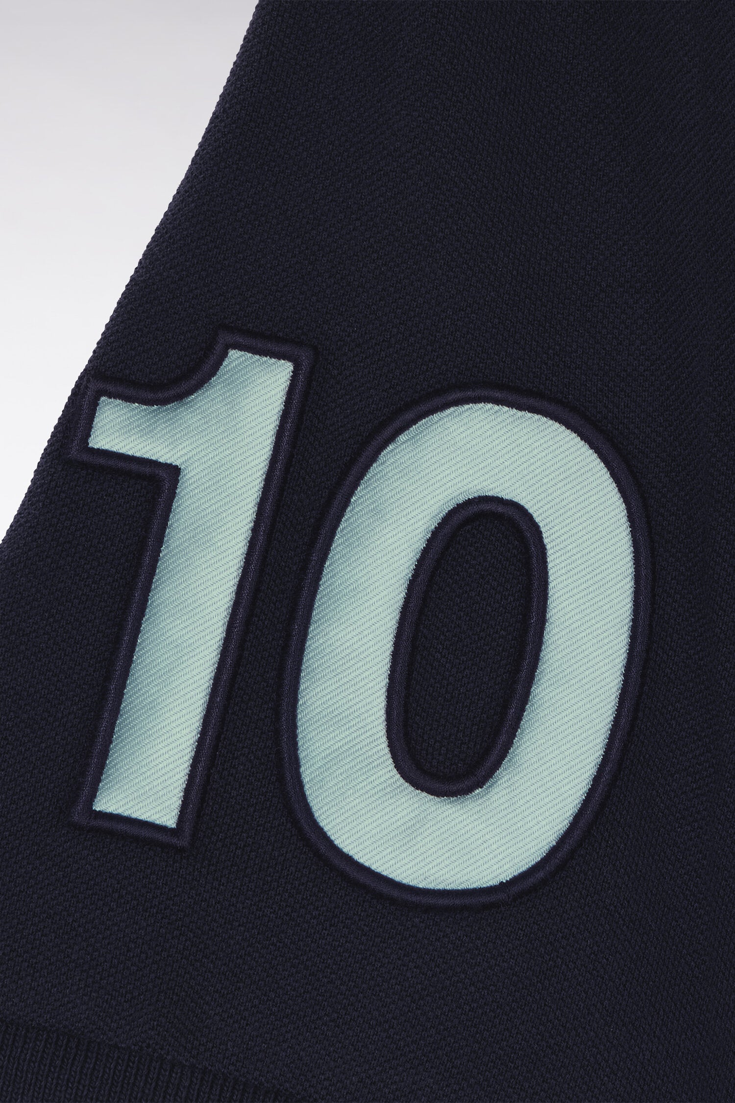 Ce polo masculin en piqué de coton coupe regular célèbre l’ADN rugby de la Maison grâce à sa large bande poitrine blanche, soulignée de passepoils marine qui structurent la silhouette. Le nœud papillon brodé et la broderie 10, enrichie d’une application en tissu cravate, renforcent son caractère identitaire. Son col et ses bas de manches en bords-côtes tricotés sont rehaussés d’un liseré contrasté, pour une touche élégante et sportive. Décliné dans les 4 coloris pastel signature de la saison, toujours associé à l'intemporel marine, ce polo à manches courtes incarne la modernité et la polyvalence du vestiaire sport chic Eden Park.