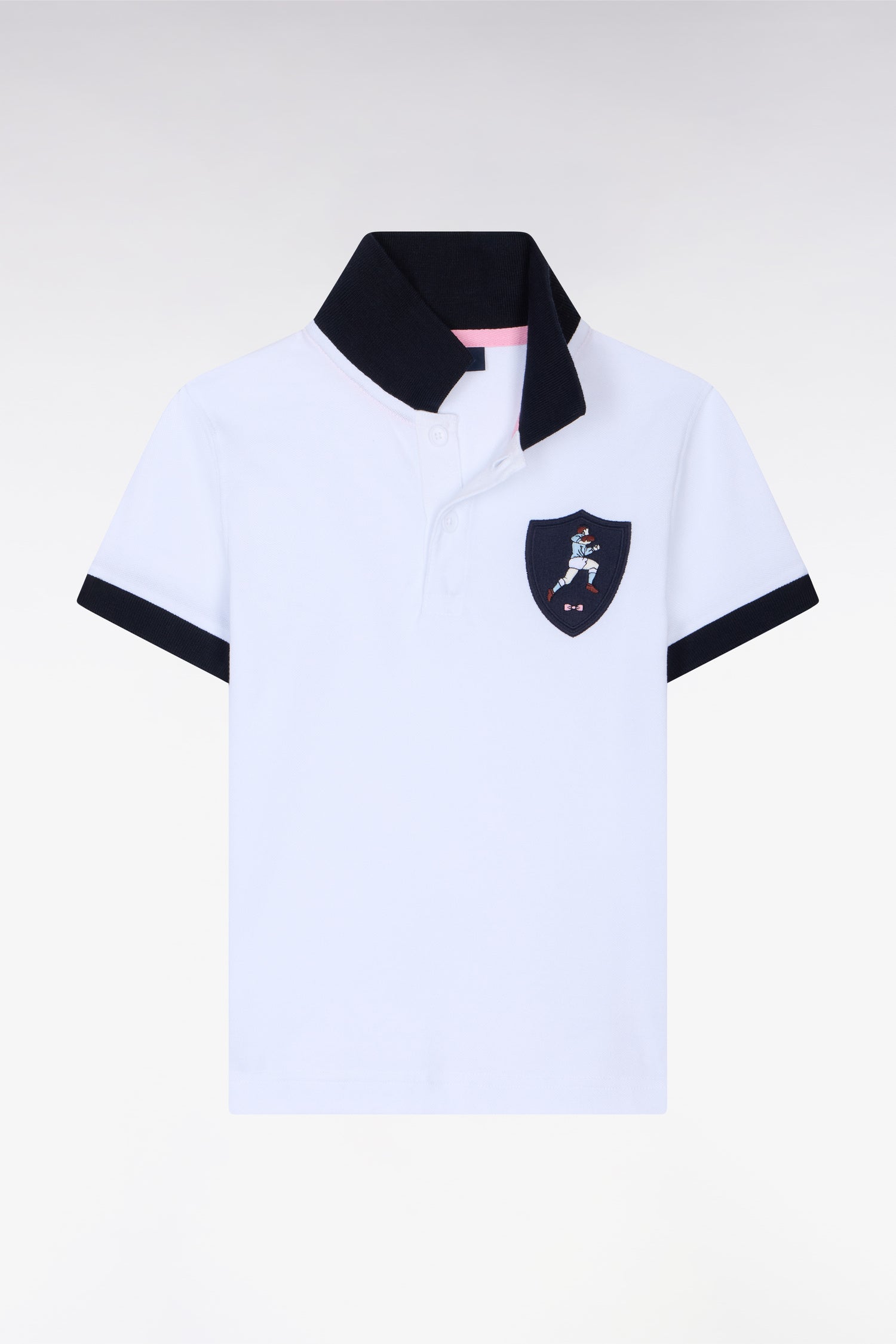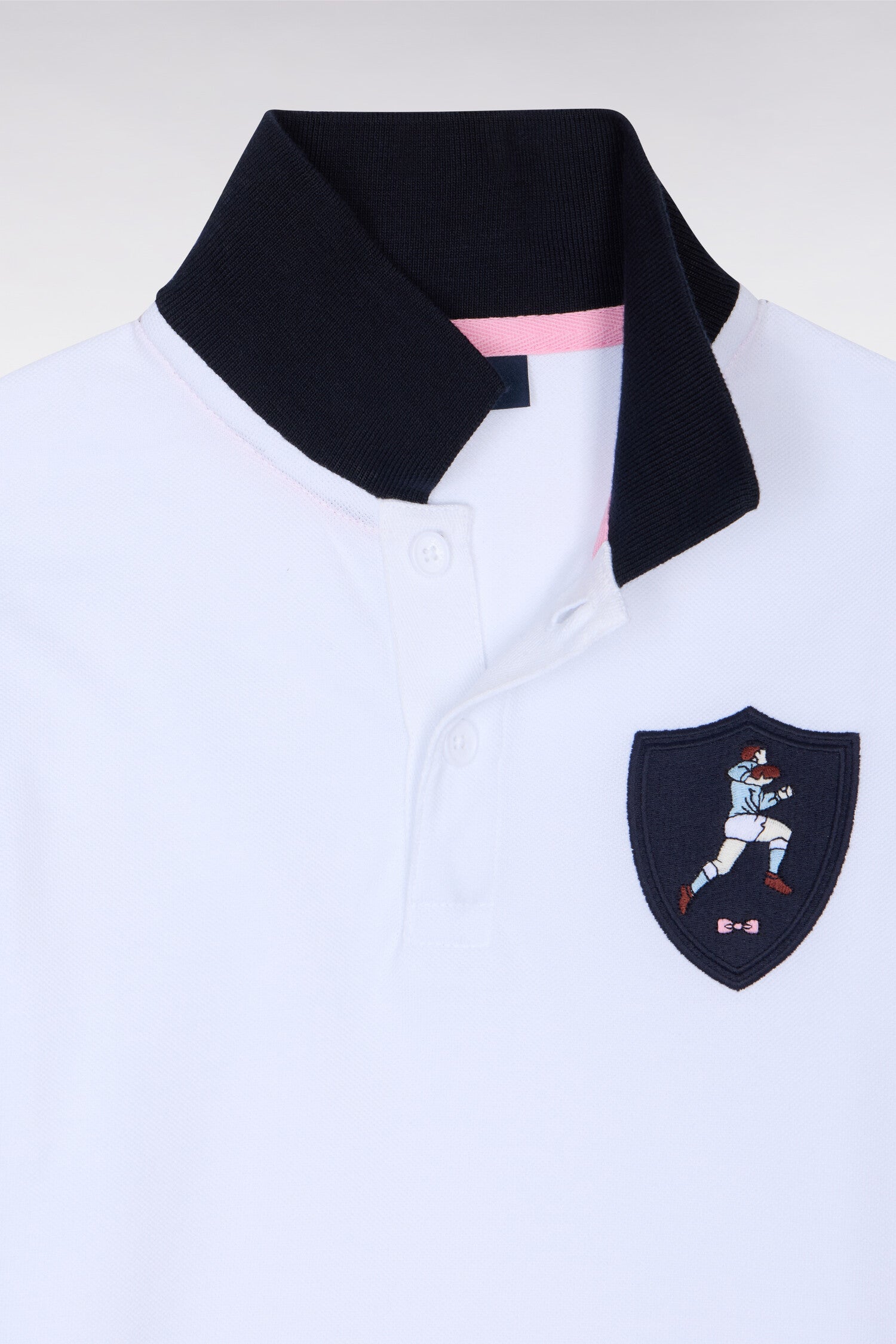 Polo à manches courtes en jersey coton blanc écusson rugby