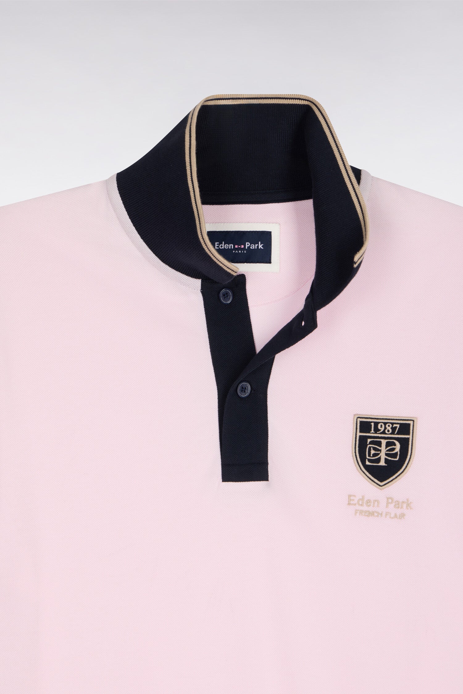 Ce polo en piqué de coton s’impose comme une pièce raffinée du vestiaire sport chic grâce à son écusson poitrine réalisé dans un esprit Ivy League, clin d’œil à une esthétique quiet luxury très actuelle. Sa coupe regular droite et son col polo marine finement rayé, prolongé par une patte de boutonnage assortie, apportent structure et élégance, tandis que les bas de manches en maille unie renforcent une allure plus habillée. Décliné dans des coloris pastel intemporels, il se porte aussi bien avec un short coordonné qu’avec un jean brut, selon l’allure recherchée.