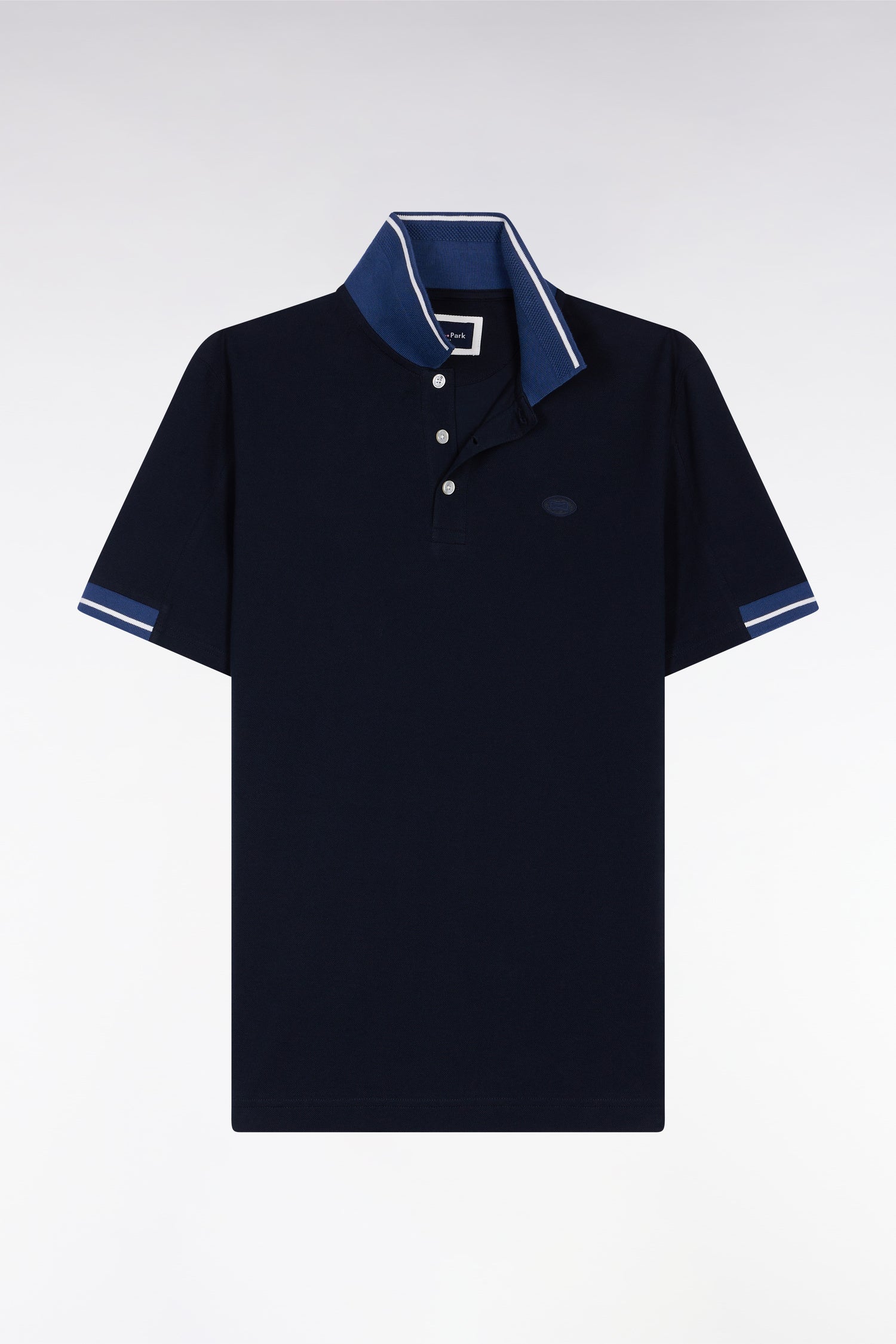 This men's polo combines graphic style and rugby heritage in an assertive design. Stripes on half the sleeve edges make a strong visual impact, enhanced by a contrasting piqué collar elegantly highlighted by the same stripe. The silicone badge on the chest and meticulous finishing touches, such as the rugby-inspired button placket, recall the emblematic codes of our French house. This loose-fitting cotton polo is available in navy, burgundy or bright white. An essential that adds a touch of dynamism to your everyday wardrobe.