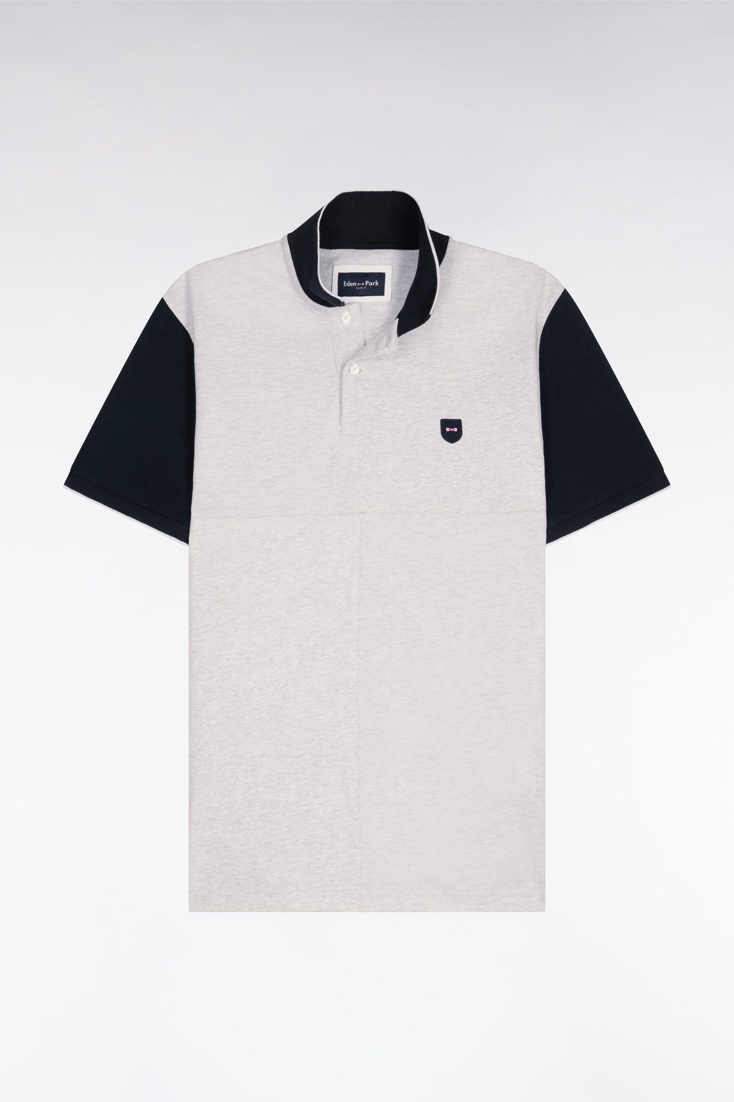 Polo manches courtes bicolore en coton gris clair à découpes coupe regular