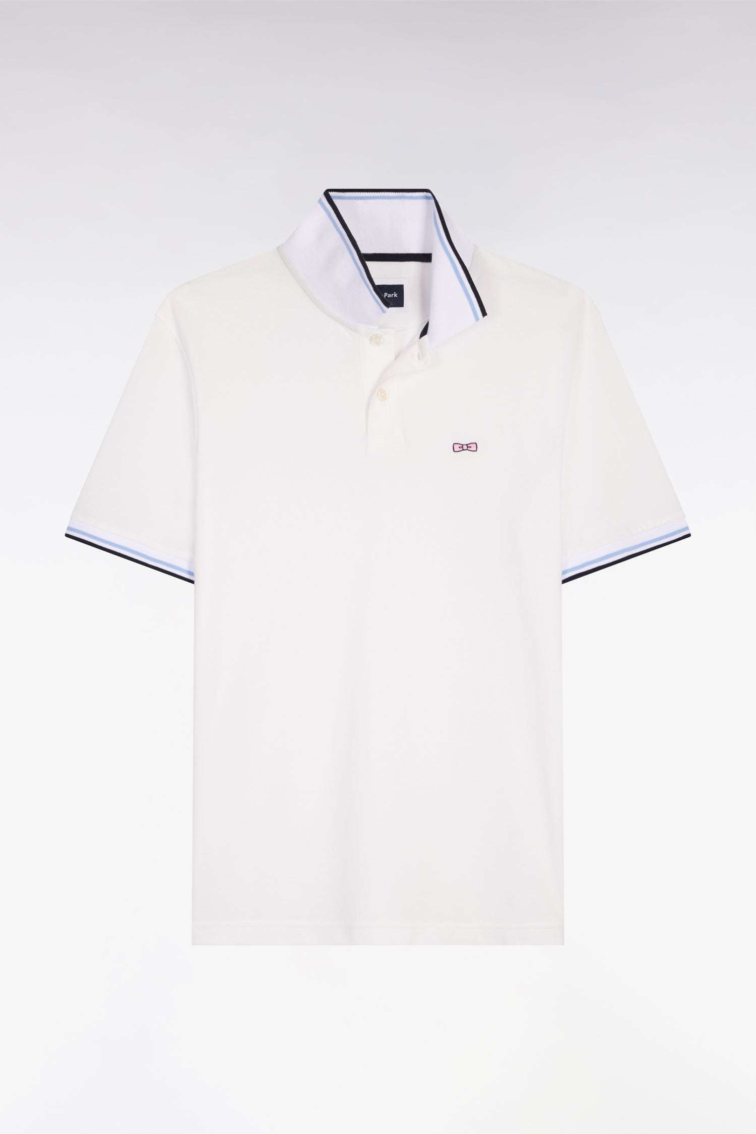 Polo manches courtes en coton blanc détails rayés coupe regular