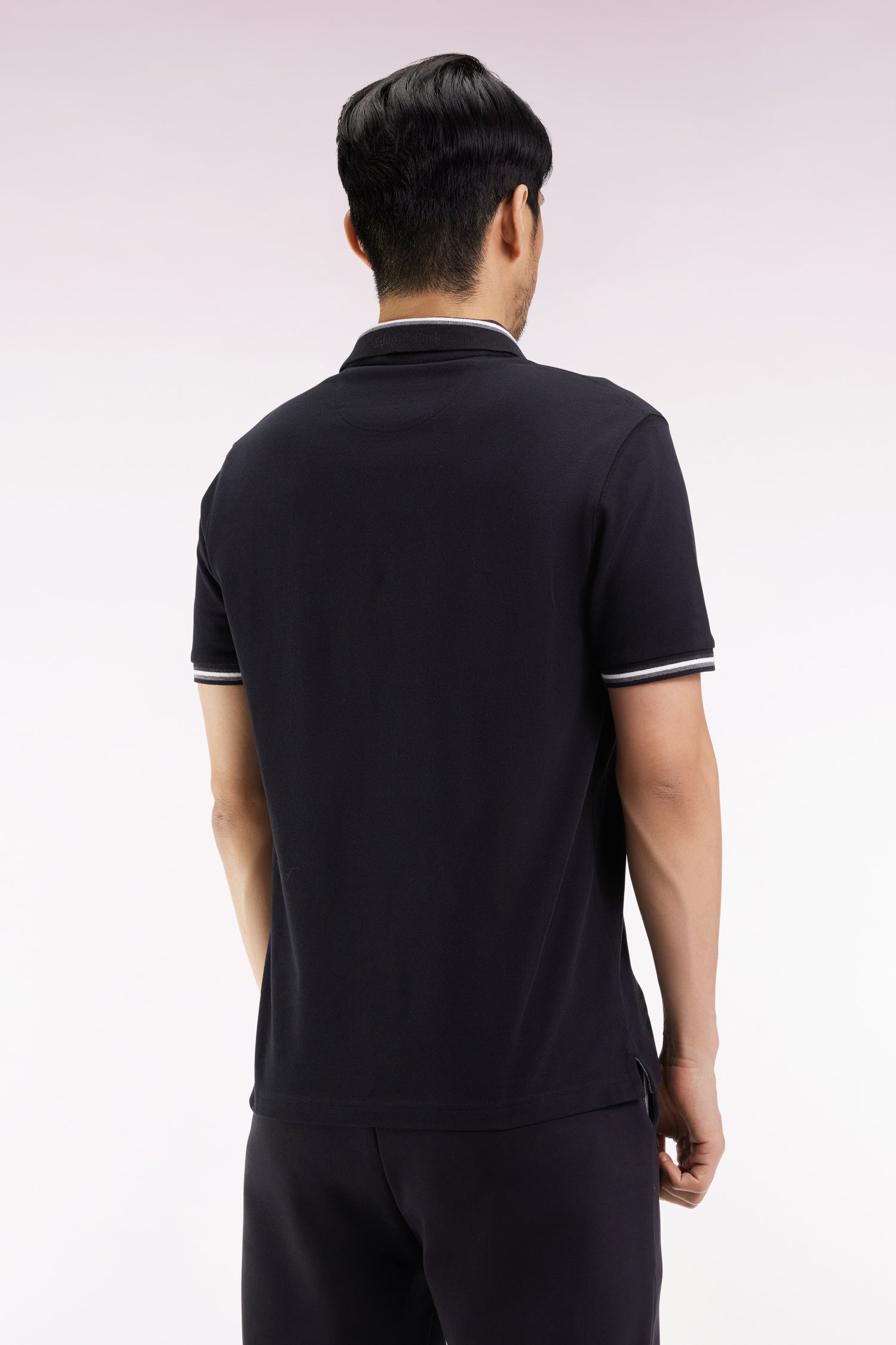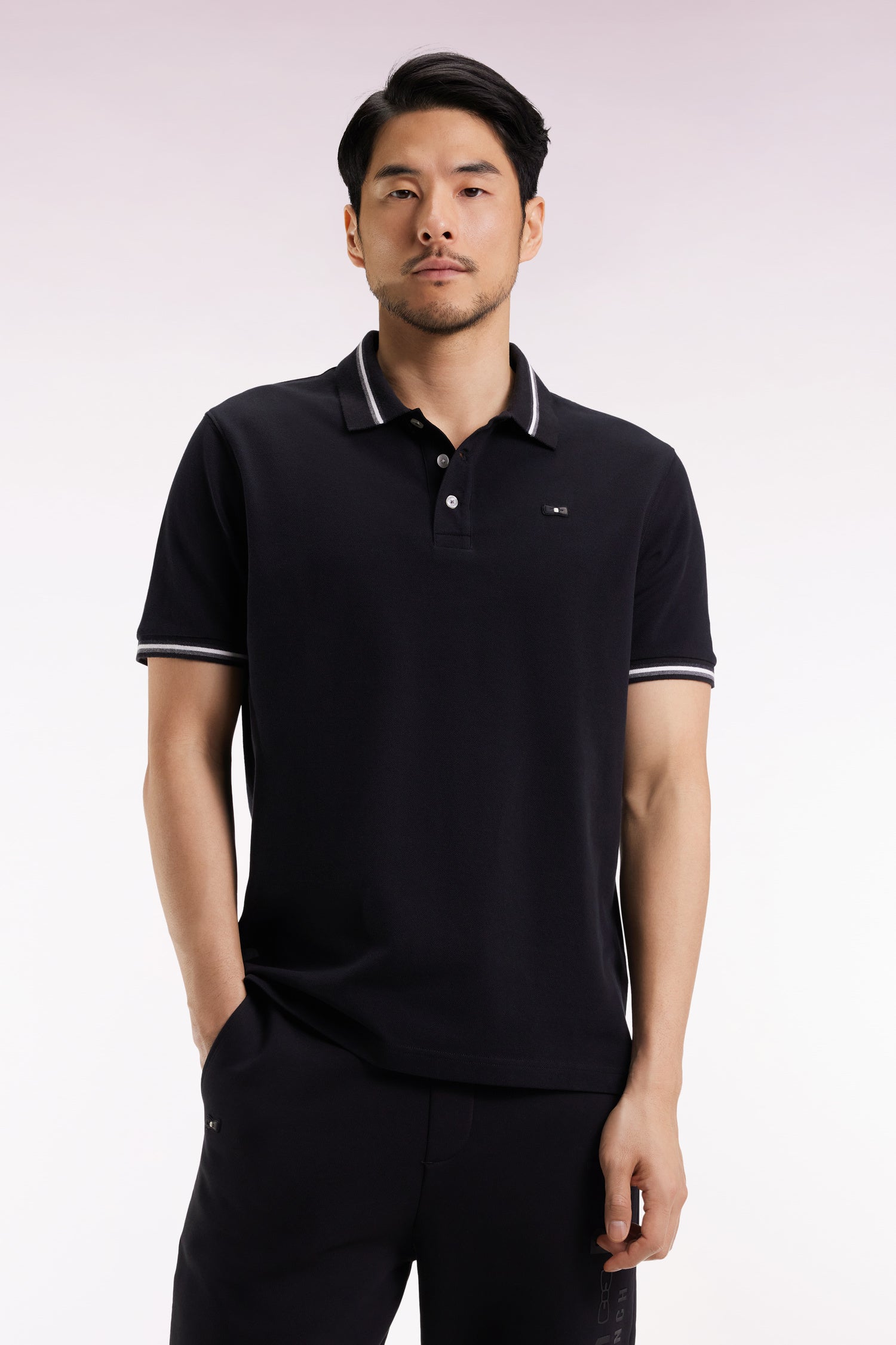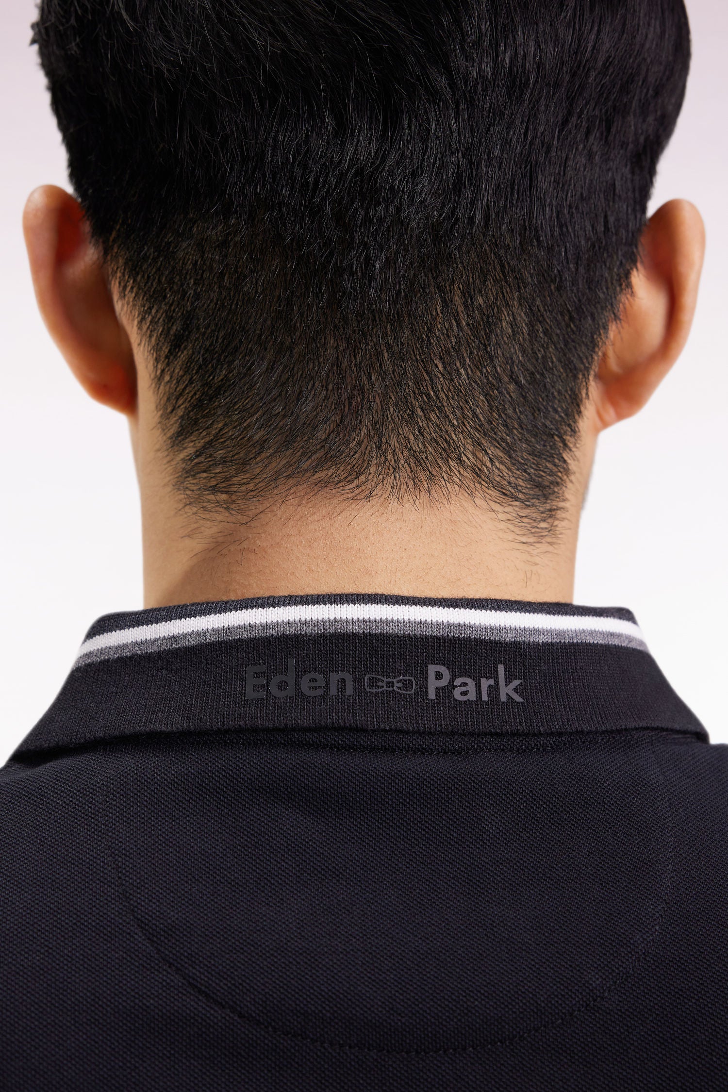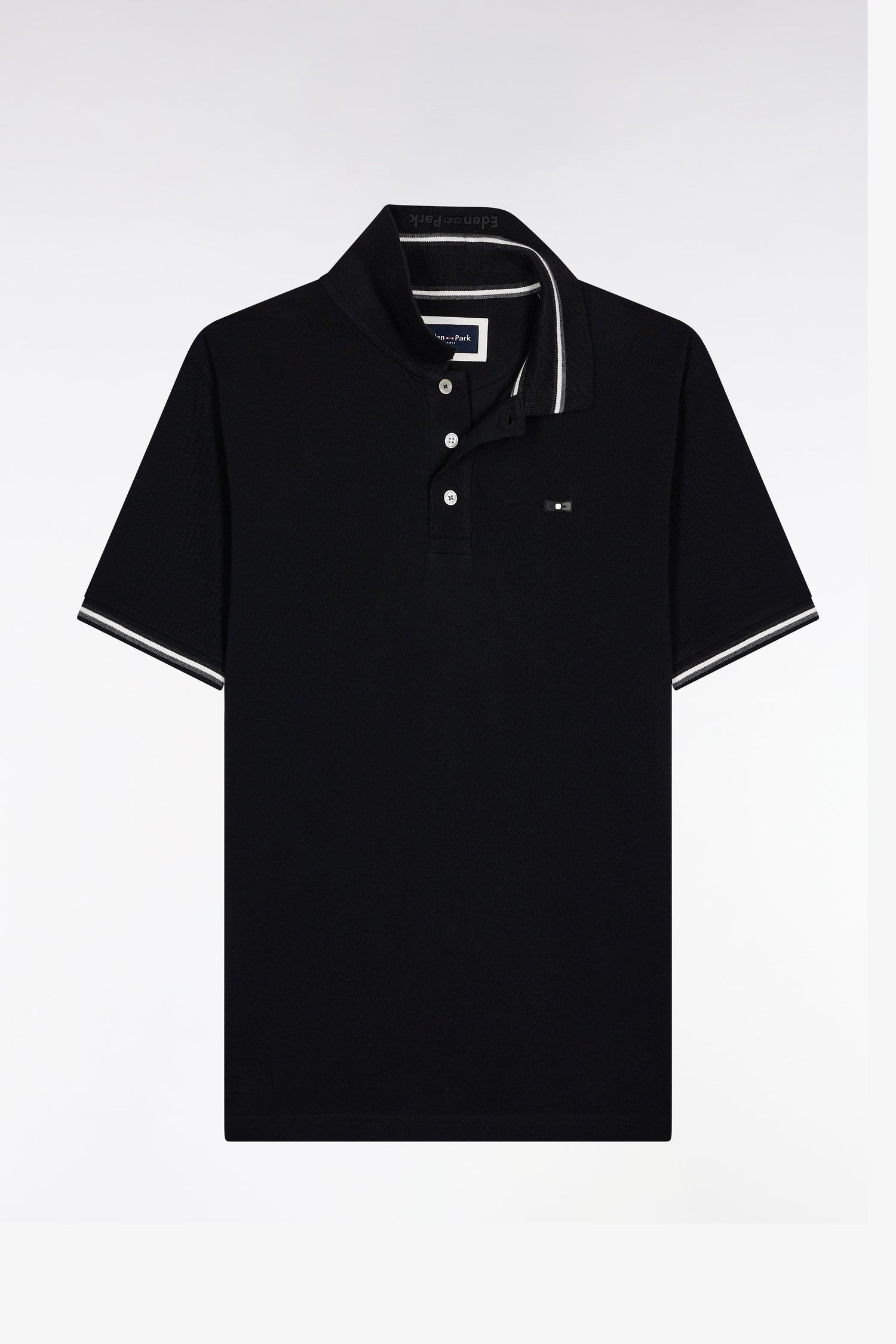 This short-sleeved polo revisits an Eden Park wardrobe classic with elegance and simplicity. Crafted in soft cotton, it features three-tone ribbing that emphasizes the sleeves with a graphic touch. Its straight cut and navy or black colors make it easy to wear, from everyday to casual weekends. Wear alone or under a light jacket