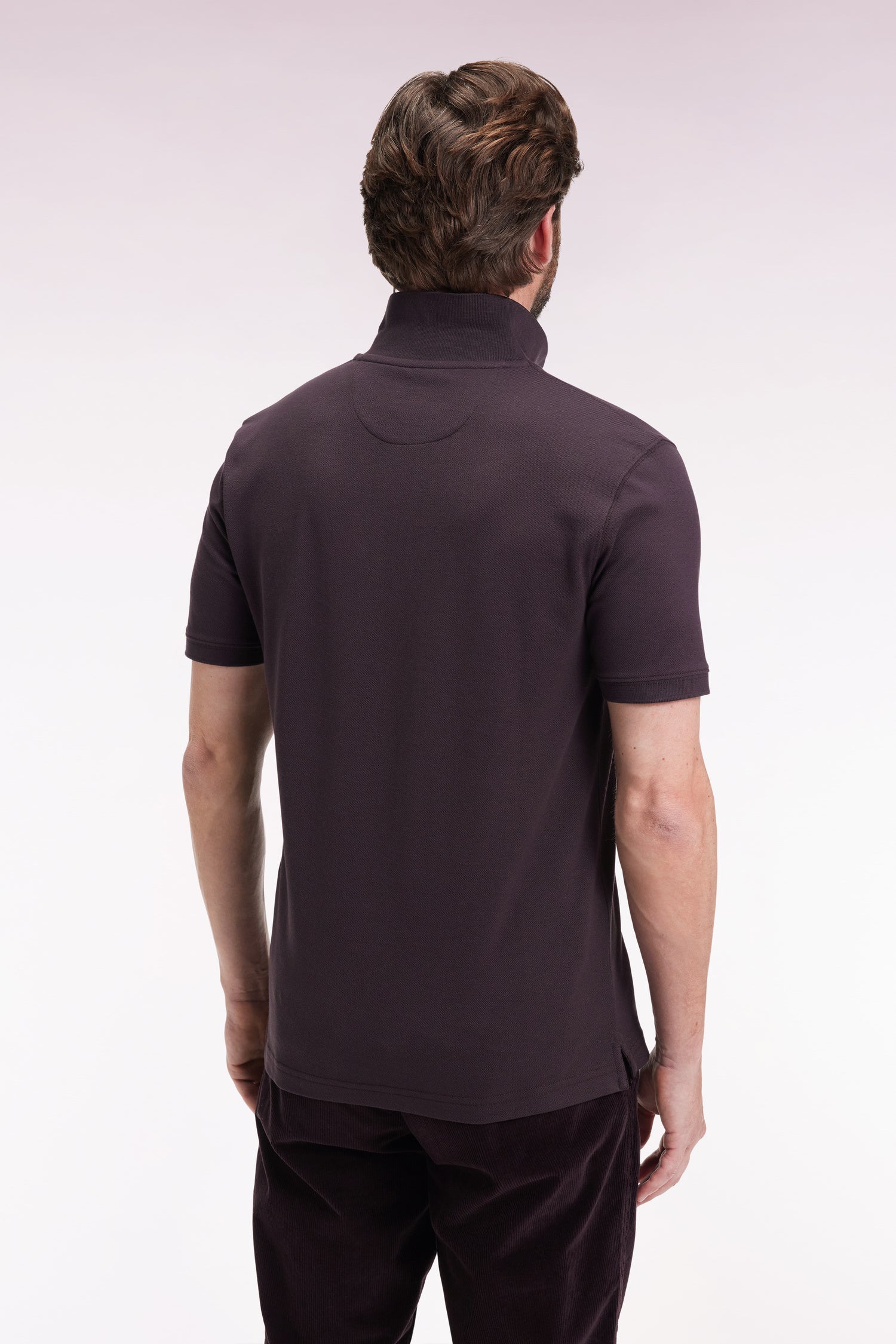 Short-sleeved polo shirt in brown Pima cotton, straight cut