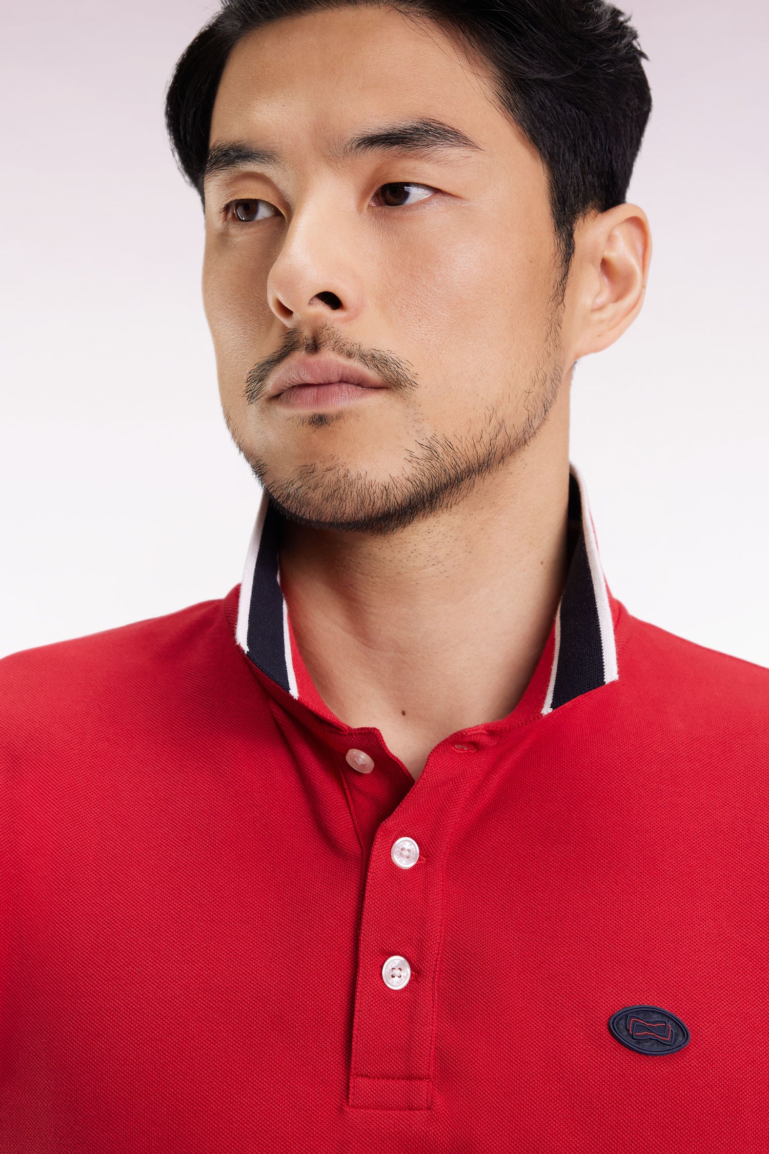 Available in blue, white or red, this polo pays homage to the hexagon! Its soft, lightweight cotton is enlivened by a silicon badge in the shape of a rugby ball, featuring our emblem: the bow tie. With its subtle stripe pattern on the collar and bottom sleeves, this loose-fitting polo shirt is the perfect upgrade for everyday wear.