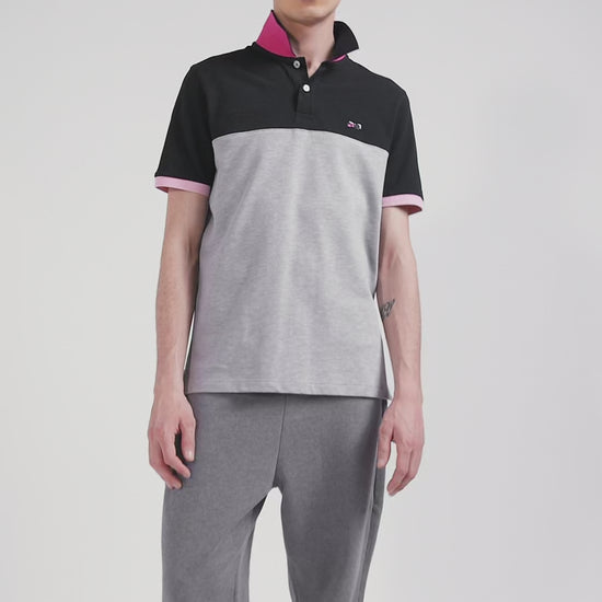Regular grey short-sleeved cotton piqué polo shirt with bow tie embroidery and contrasting details