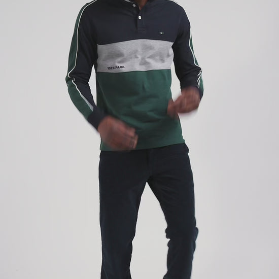 Our cotton piqué polo features a two-tone front panel and long sleeves in contrasting colors, adding a touch of originality to this timeless classic. Inspired by rugby jerseys, this colorblock polo brilliantly combines contrasting colors in autumnal hues for a striking visual effect. Perfect for those looking to inject a dose of bold style into their everyday wear, while retaining the comfort and quality of piqué cotton.