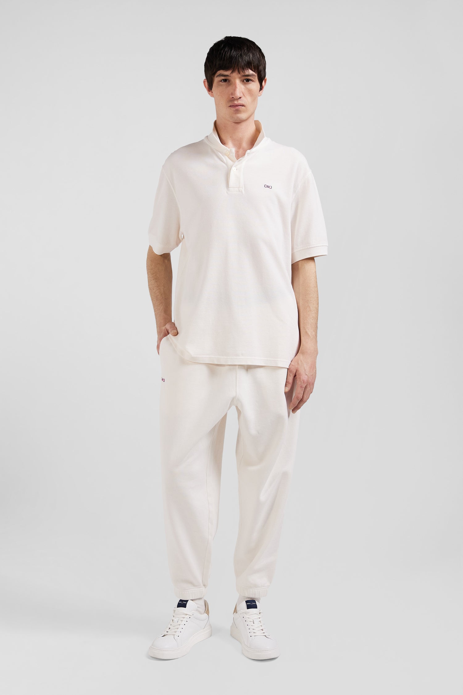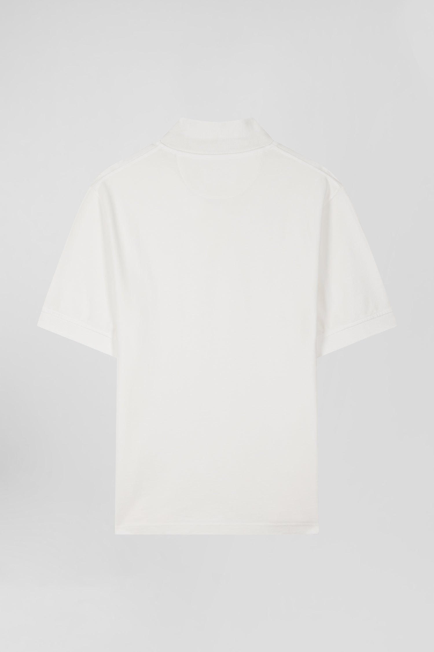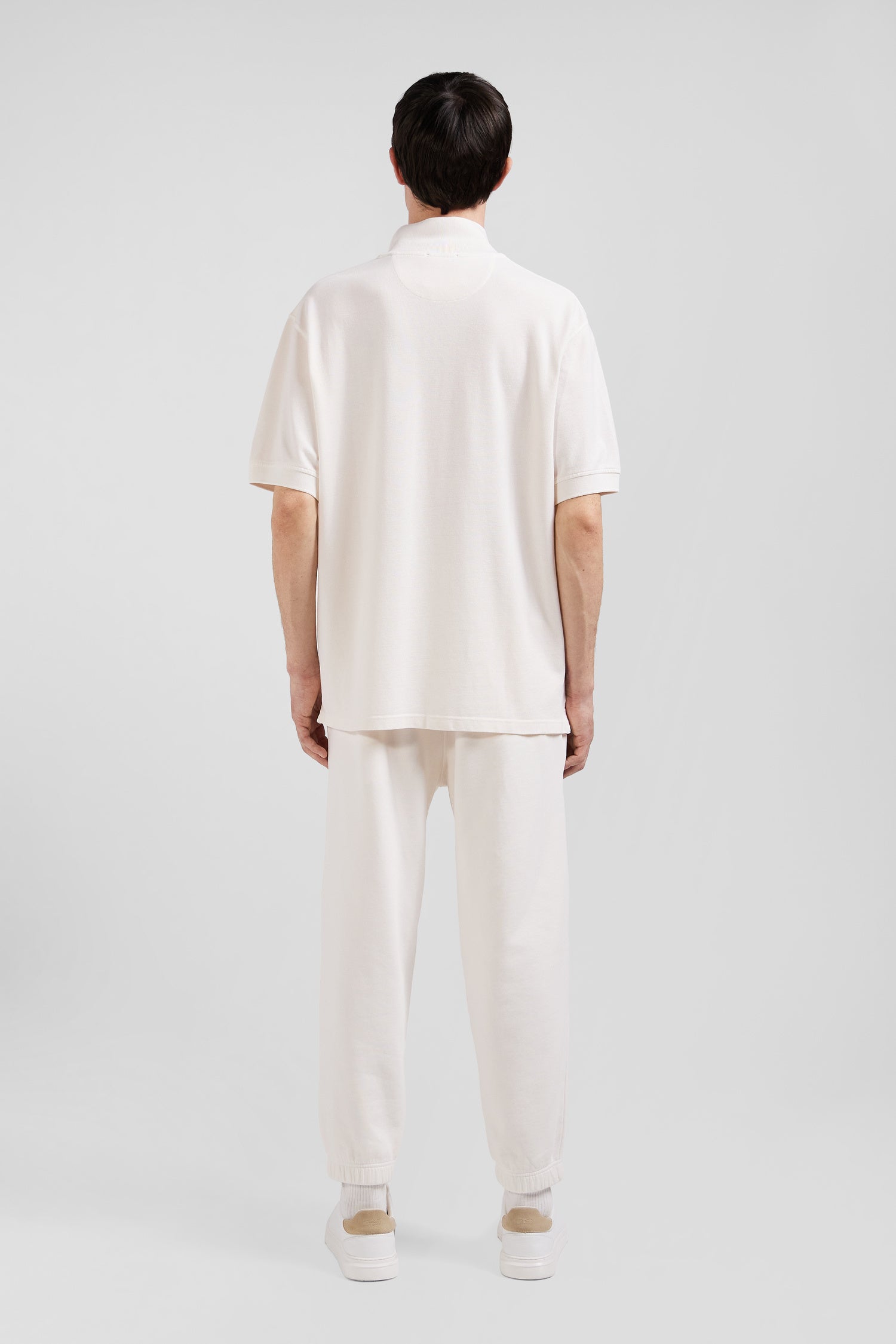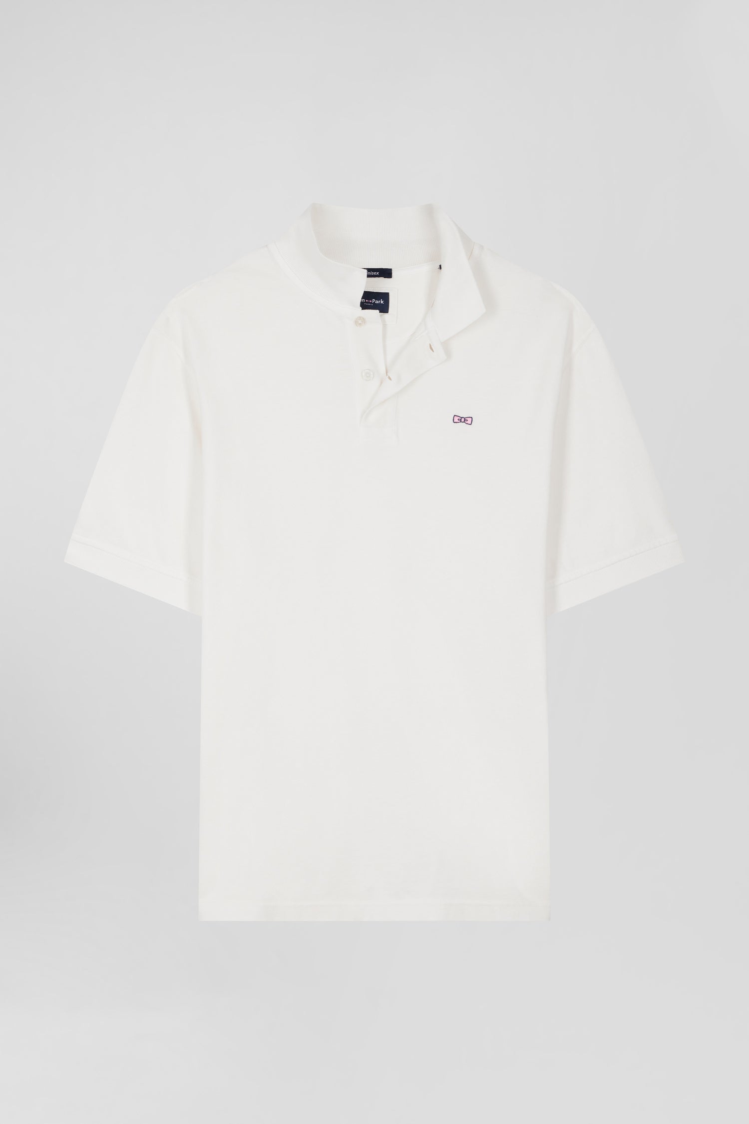 Oversized ecru unisex short-sleeved cotton piqué polo shirt