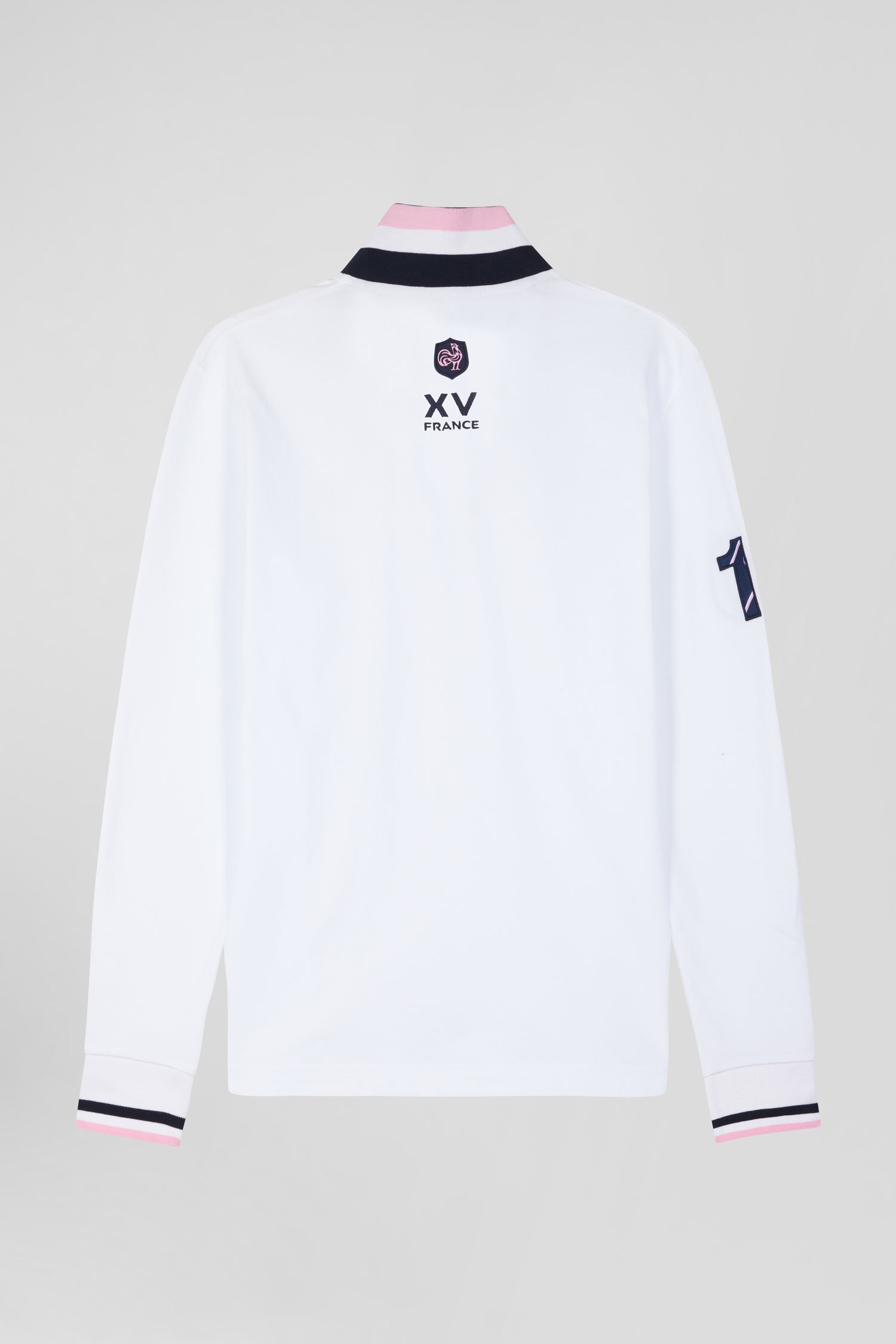 Regular white long-sleeved cotton piqué polo shirt with XV de France embroidery