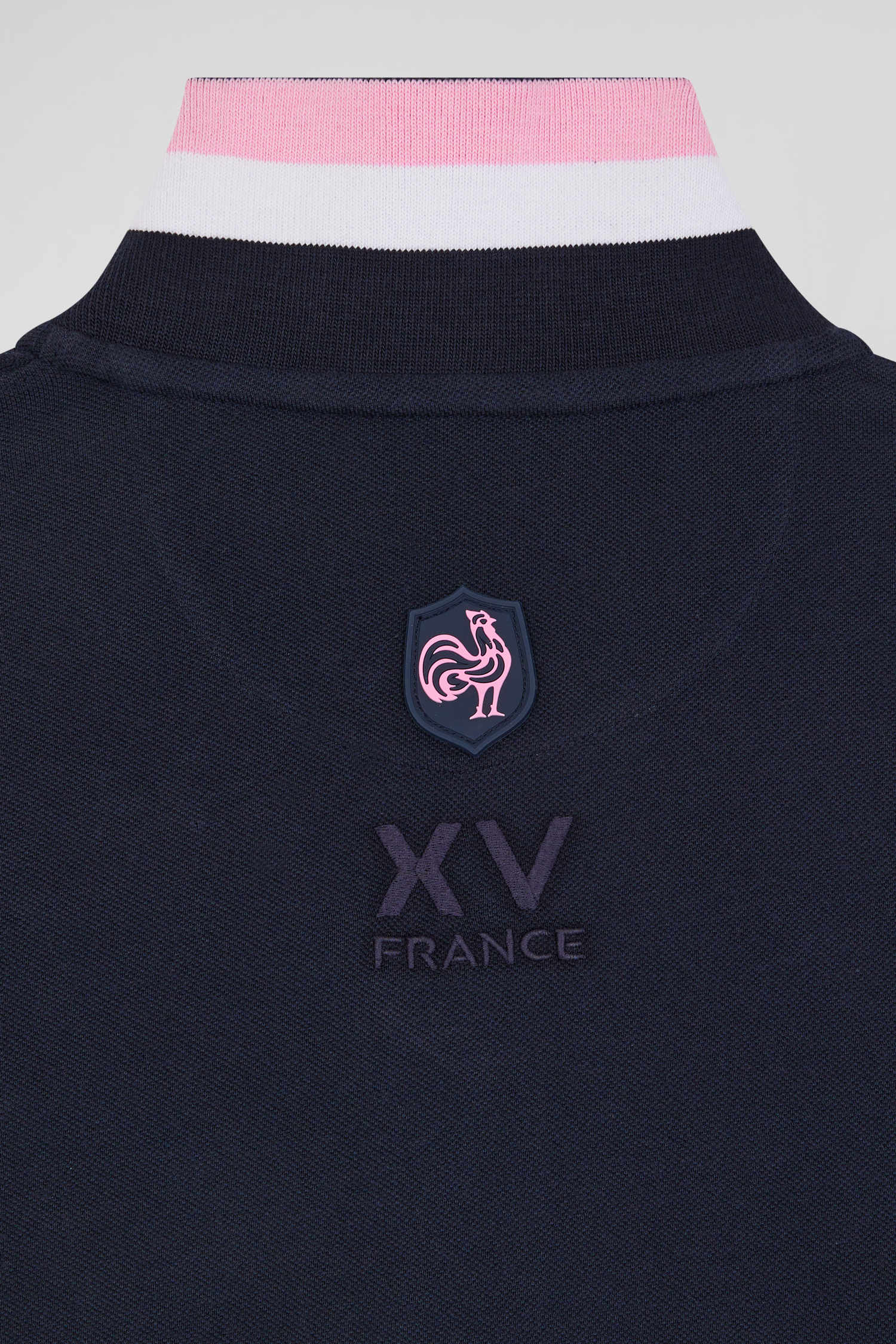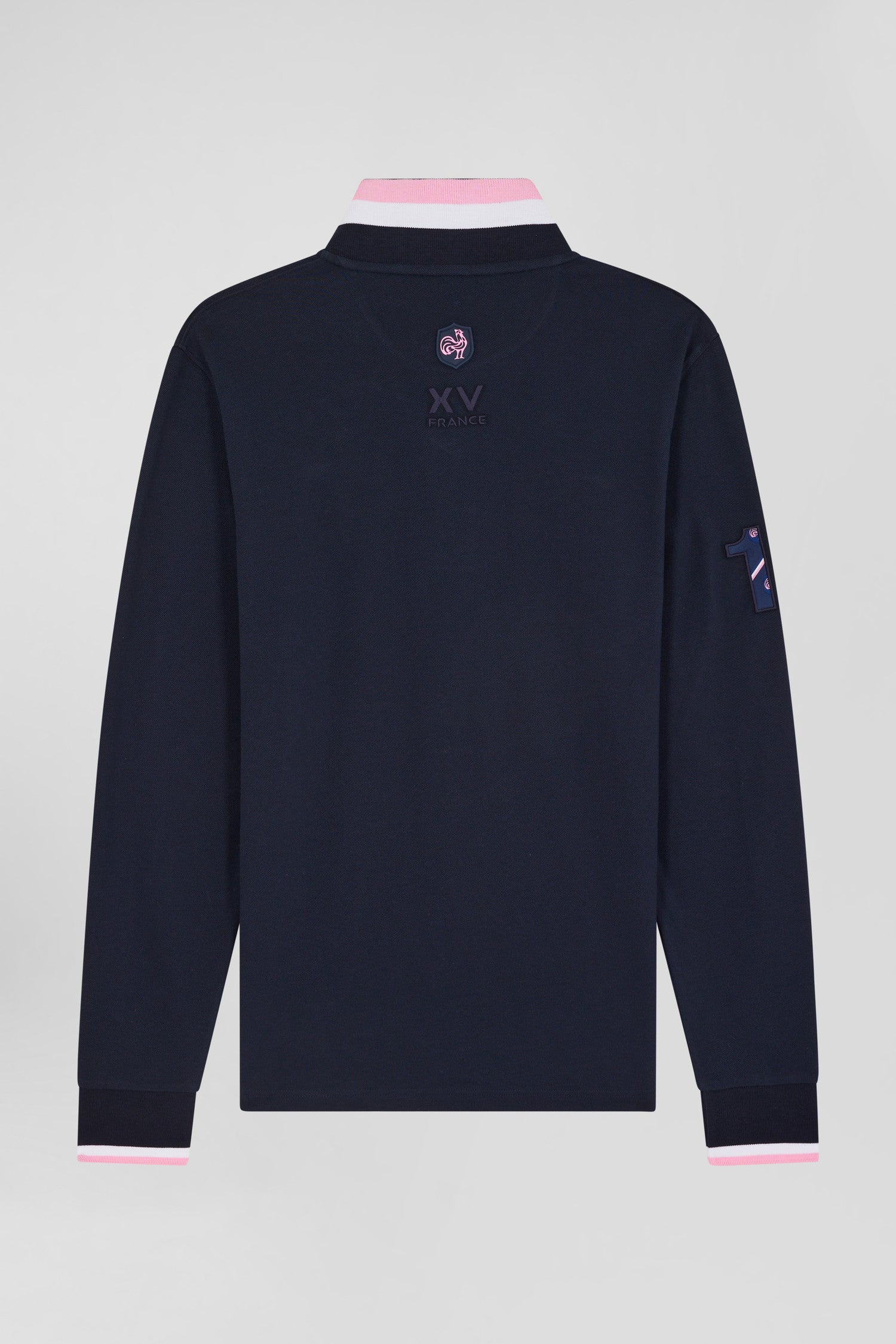 Regular navy long-sleeved cotton piqué polo shirt with XV de France embroidery