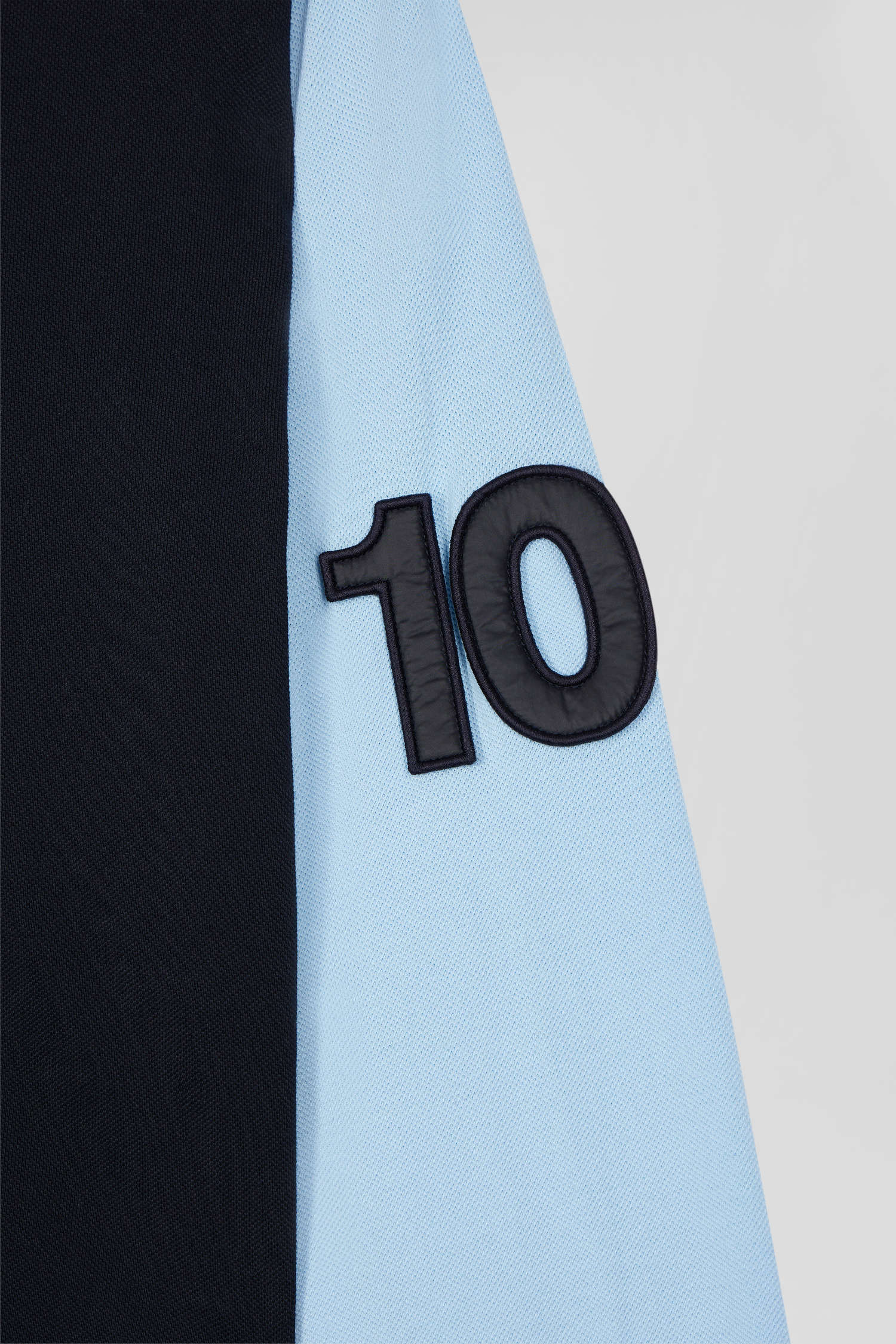 Regular sky blue long-sleeved cotton piqué polo shirt with padded embroidery