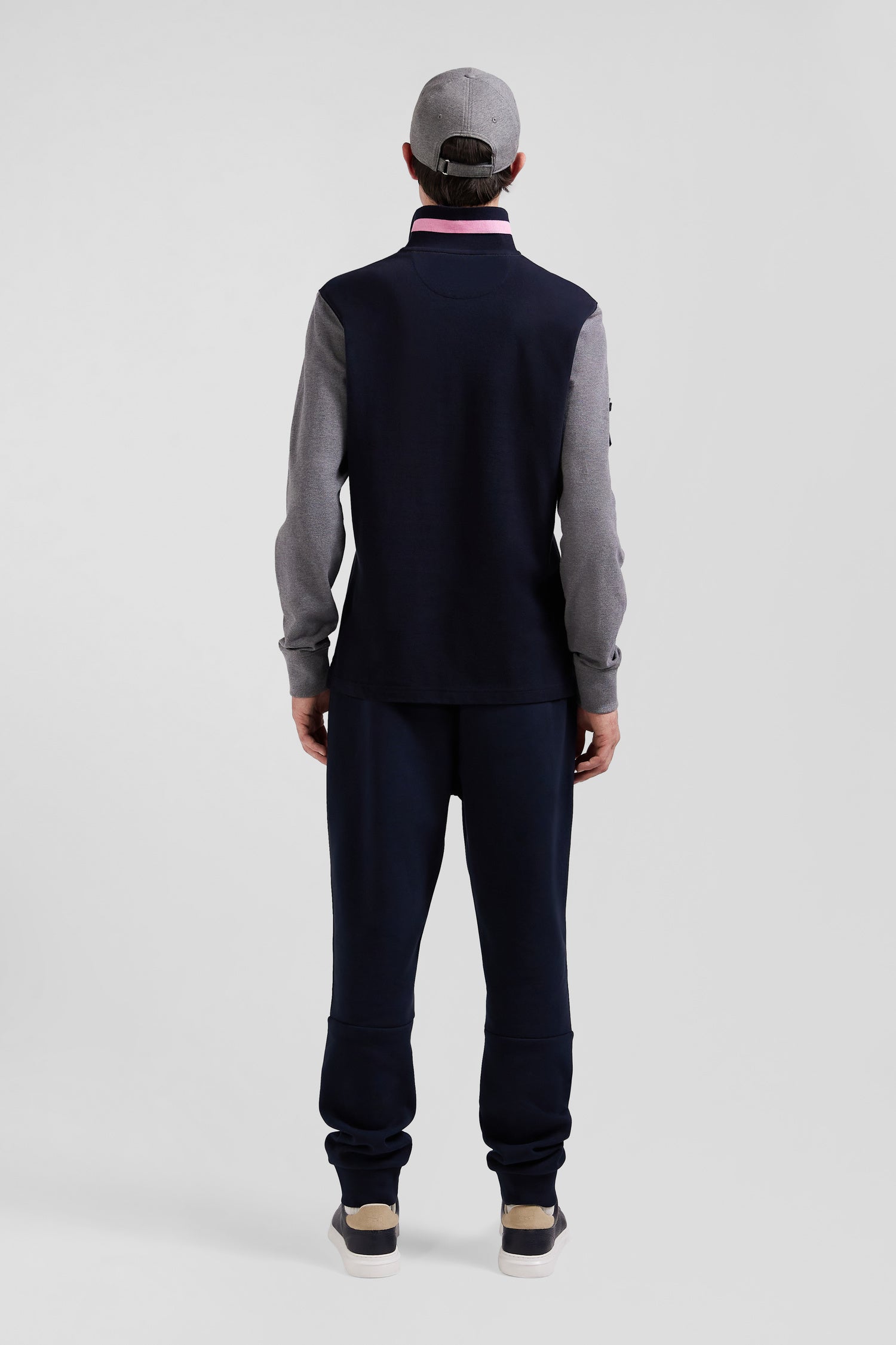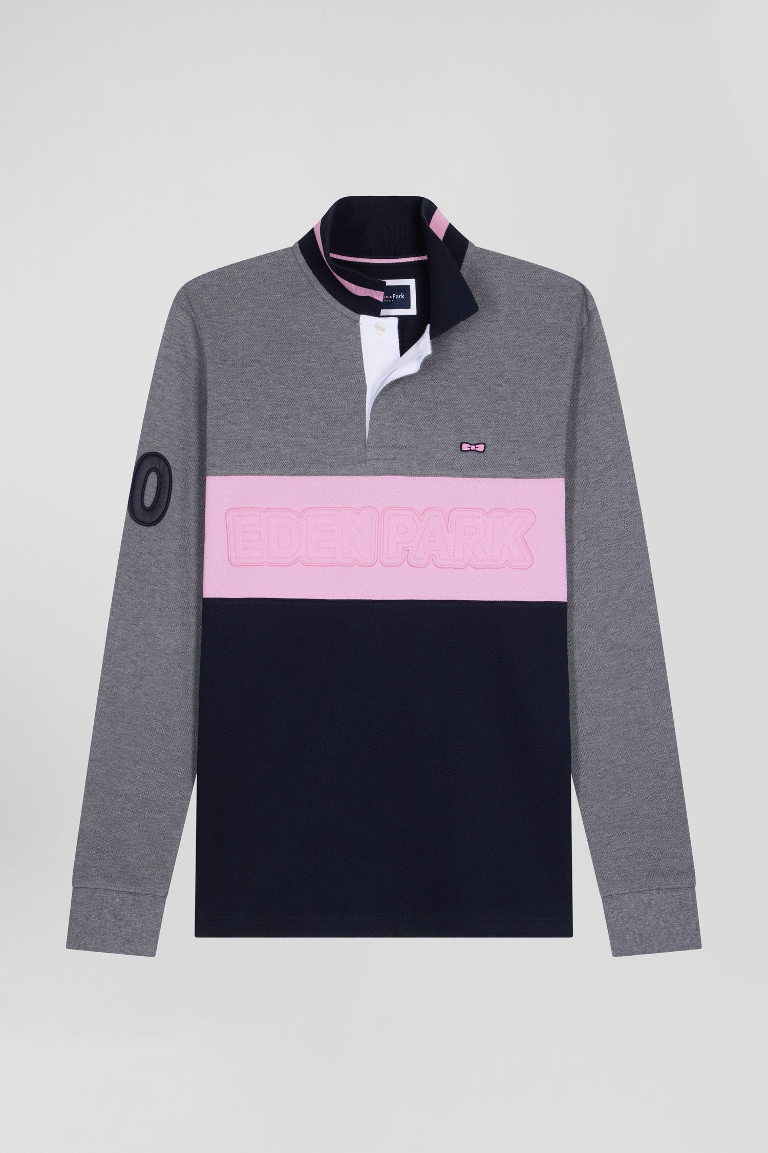 Discover French refinement with this Eden Park long-sleeved polo shirt. Made from high-quality cotton piqué, it combines softness and durability. The bold creativity of our House is evident in its colorful cutouts, quilted EDEN PARK embroidery and distinctive sleeve embroidery with nylon appliqué for a sporty touch. The hooped collar and knitted neckband add a subtle elegance to this colorblock polo.