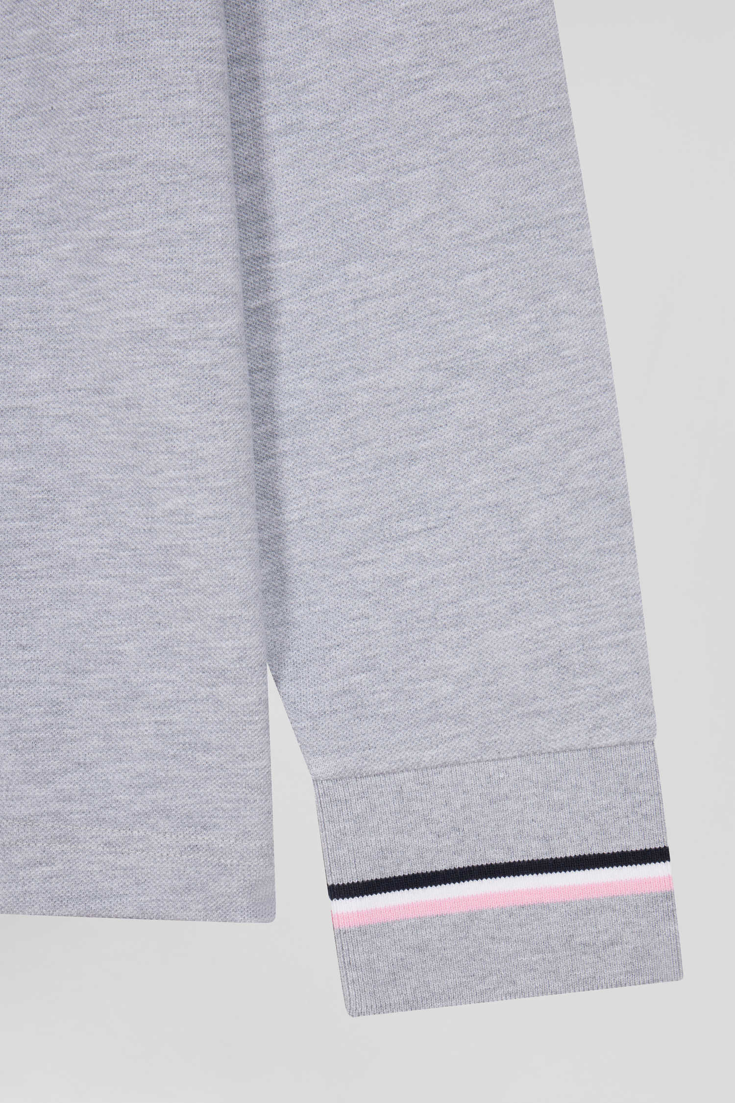 Regular grey long-sleeved cotton piqué polo shirt with rubber badge